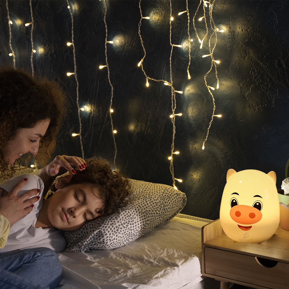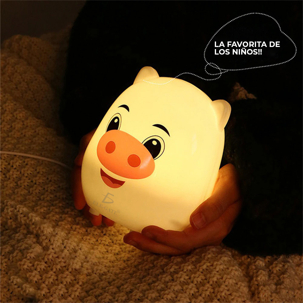 Nuestra adorable luz de noche de cerdo es ideal para iluminar cualquier espacio, desde dormitorios hasta pasillos. Con colores ajustables, esta luz suave y sin parpadeos es perfecta para crear un ambiente acogedor en tu hogar. Además, está diseñada con la seguridad de los niños en mente y es fácil de cargar con USB. Ya no tendrás que preocuparte por las noches oscuras, ¡brinda a tus pequeños una luz nocturna que los haga sentir seguros y felices mientras duermen!”