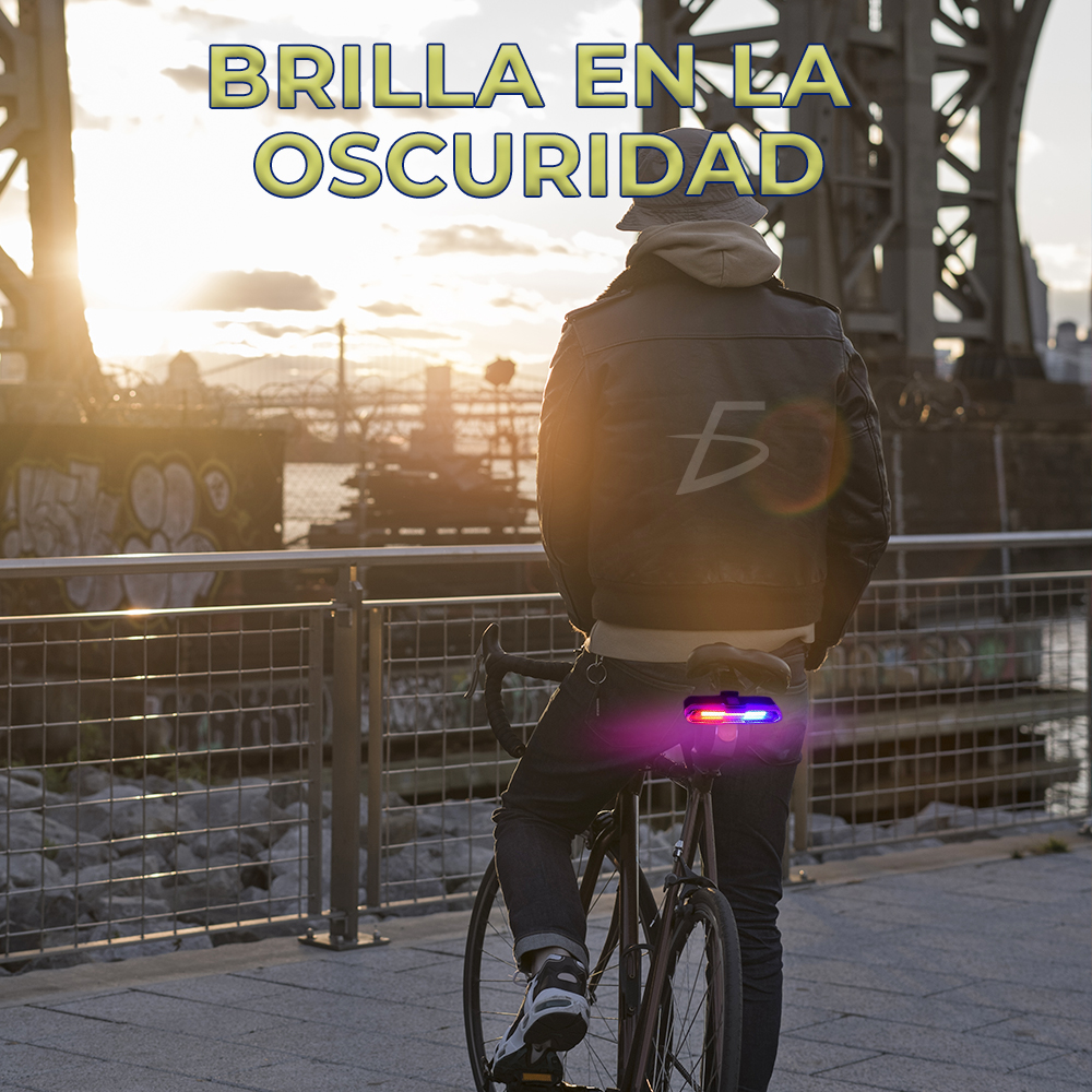 Luz Tricolor para Bicicleta con 4 horas de uso continuo, a prueba de agua y facil de instalar con tres modos de luz, fija, de emergencia y de latencia.