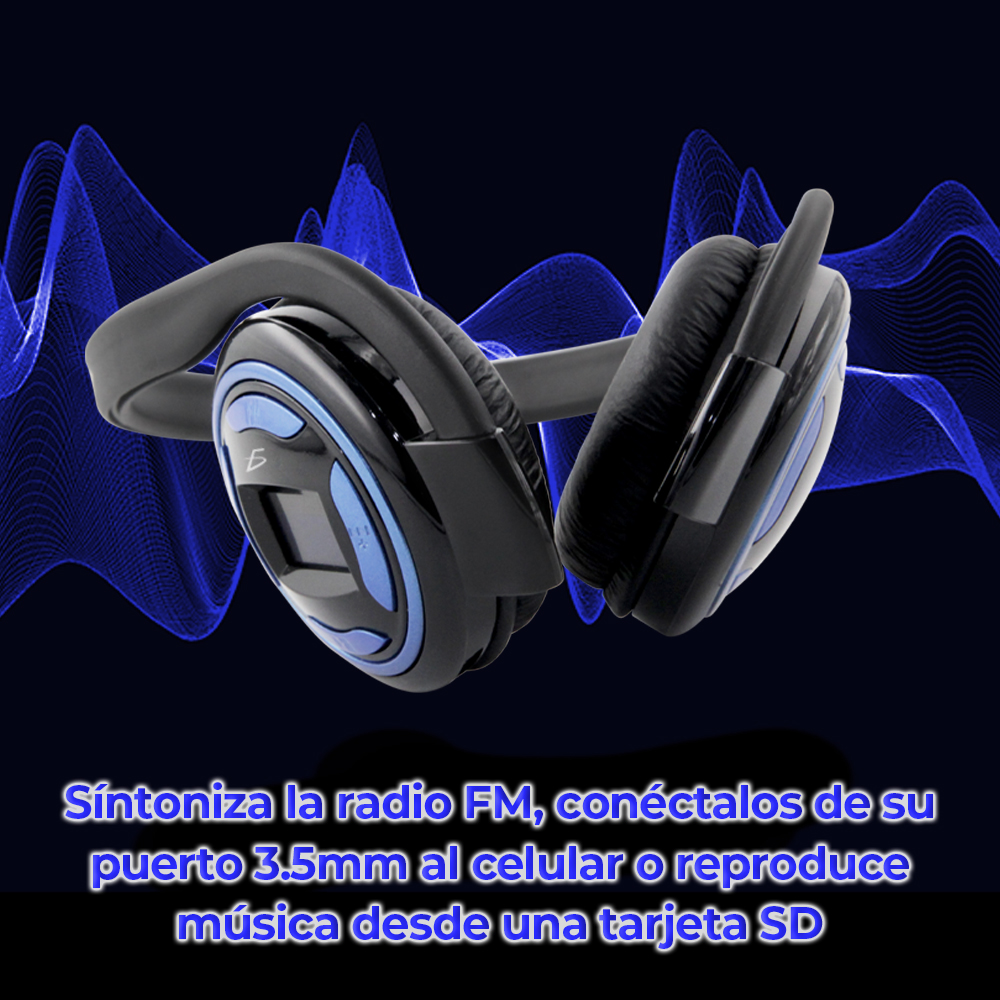 Audífonos Bluetooth con Radio FM y tarjeta Sd, hasta 8 horas de música continúa. Con tablero de control digital y con un sonido que siempre te envolverá con tu música favorita