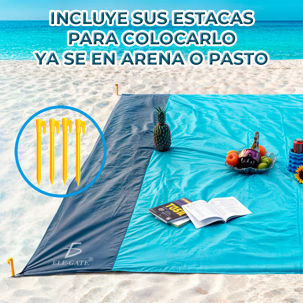 Manta de Playa 210 x 200 cm Repelente al Agua a la Arena y a la Tierra Incluye 4 Estacas. Gracias a su material suave y delgado la hacen ideal para los viajes, picnics o para tomar el sol en la playa.