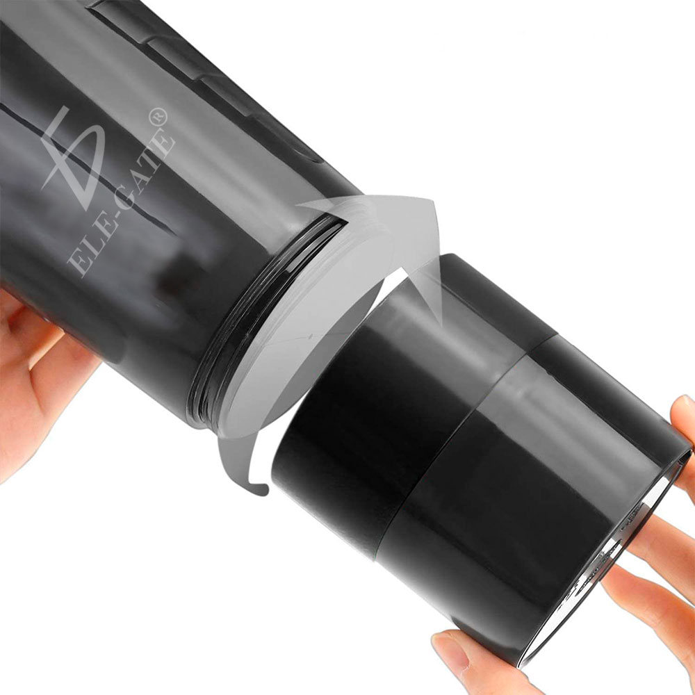 Almacenamiento de 3 capas por giro y bloqueo agrega capacidad de almacenamiento de polvos, píldoras, proteínas, vitaminas, nutrición, suplementos y más. Ideal para llevar suplementos adicionales para su uso durante todo el día.