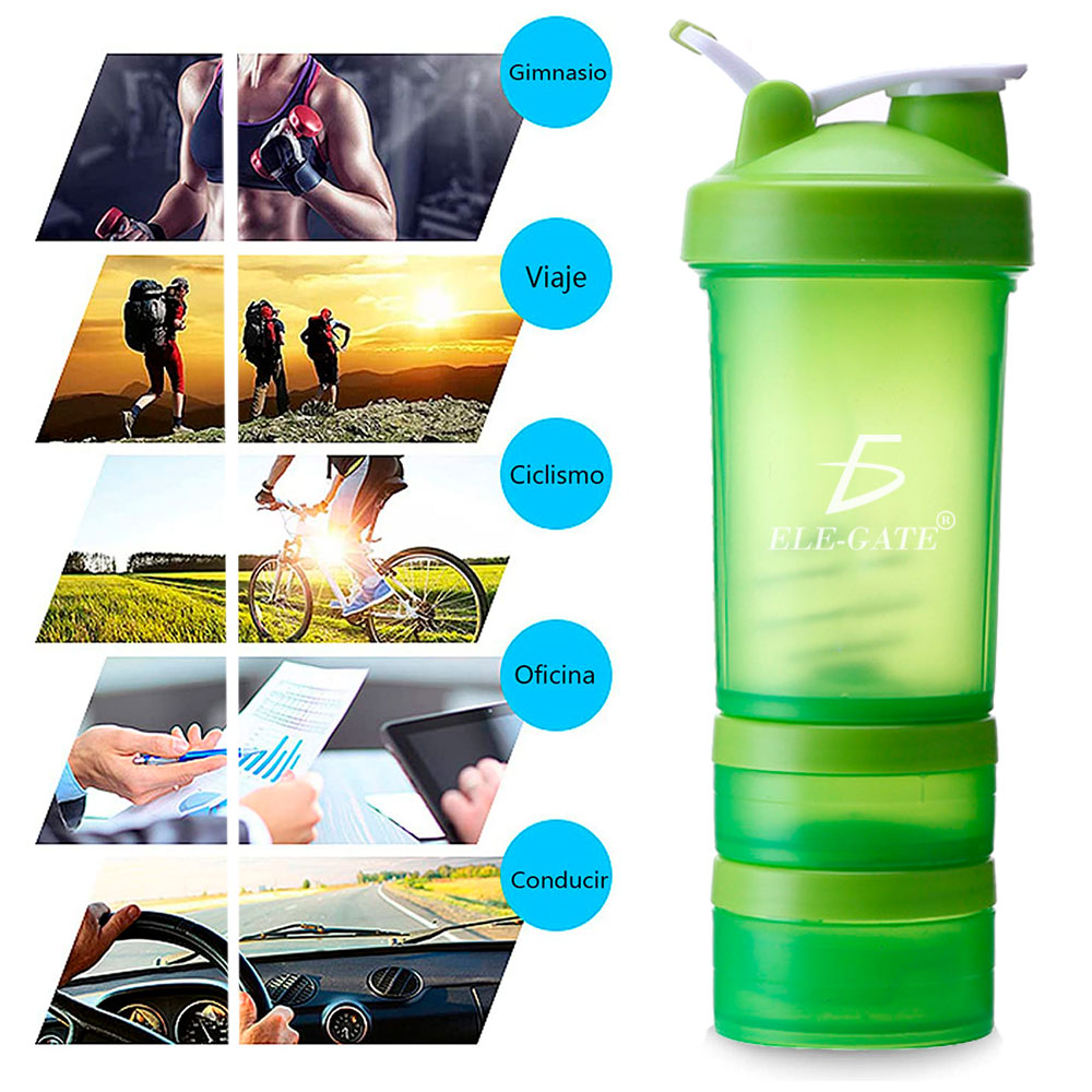 Almacenamiento de 3 capas por giro y bloqueo agrega capacidad de almacenamiento de polvos, píldoras, proteínas, vitaminas, nutrición, suplementos y más. Ideal para llevar suplementos adicionales para su uso durante todo el día.