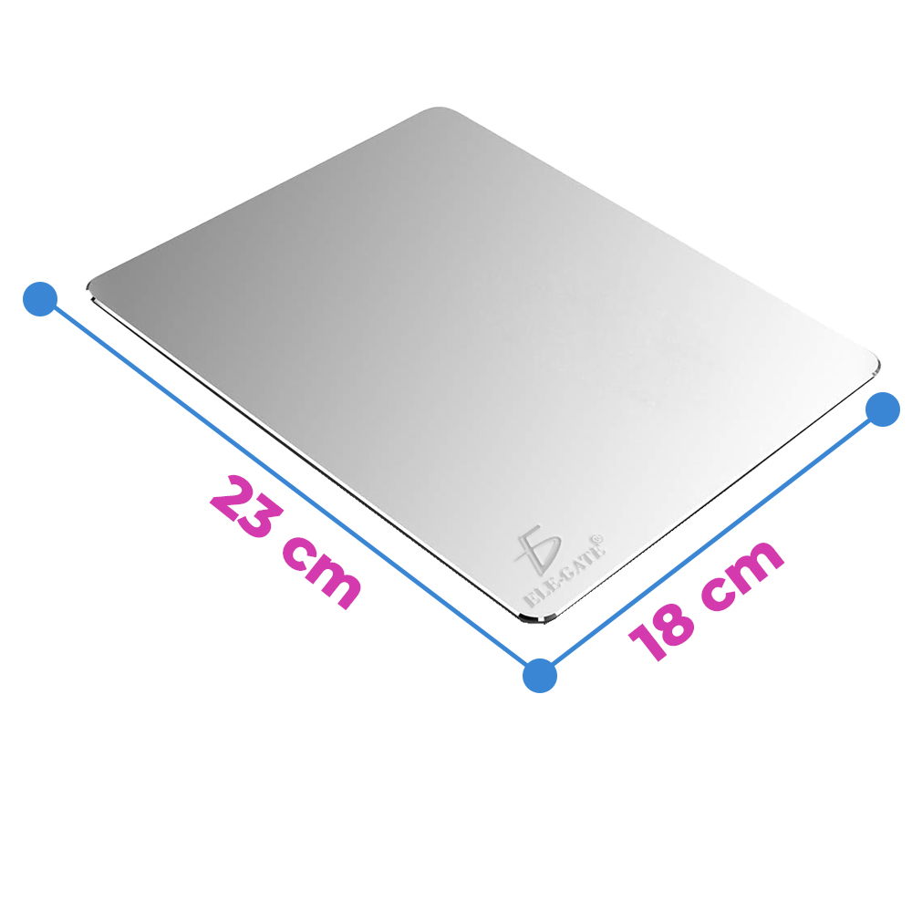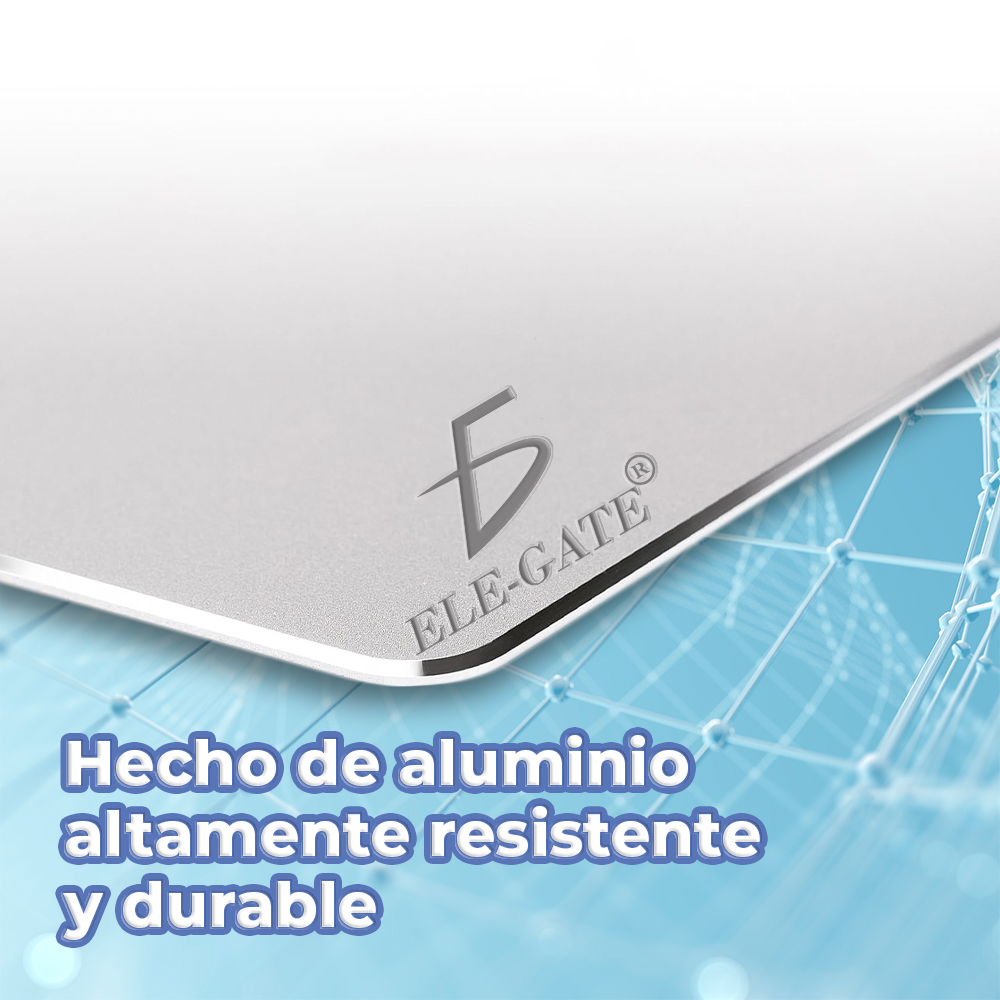 Experimenta la máxima precisión y durabilidad con nuestra Alfombrilla de Mouse de Aluminio. Esta alfombrilla única combina un diseño delgado y elegante con una construcción resistente al agua, ideal para el uso diario en la computadora portátil, computadora y PC. El acabado plateado agrega un toque de estilo a tu espacio de trabajo, mientras que la base antideslizante garantiza que la alfombrilla permanezca en su lugar durante el uso. Ya sea para el trabajo o el juego, nuestra alfombrilla de mouse de aluminio Ele-Gate es la elección perfecta para una experiencia de navegación sin igual. Alfombrilla rígida para mouse es de aluminio de metal plateado, alfombrilla de mouse fresca, aspecto elegante y diseño elegante, mucho armonioso con computadora de escritorio y portátiles.  Movimiento suave: la alfombrilla de mouse ultra fina está hecha con aluminio duradero y suave, un material que permite que tu mouse se deslice fácilmente para que obtengas movimientos perfectamente coordinados. La alfombrilla de mouse de control también es silenciosa y resistente Compatibilidad: la alfombrilla de mouse de metal de aluminio es compatible con todos los ratones del mercado, como ratones láser, ópticos y mecánicos, especialmente para mouse inalámbrico. 0.079 in de grosor para adaptarse a todas las superficies
