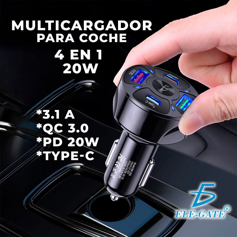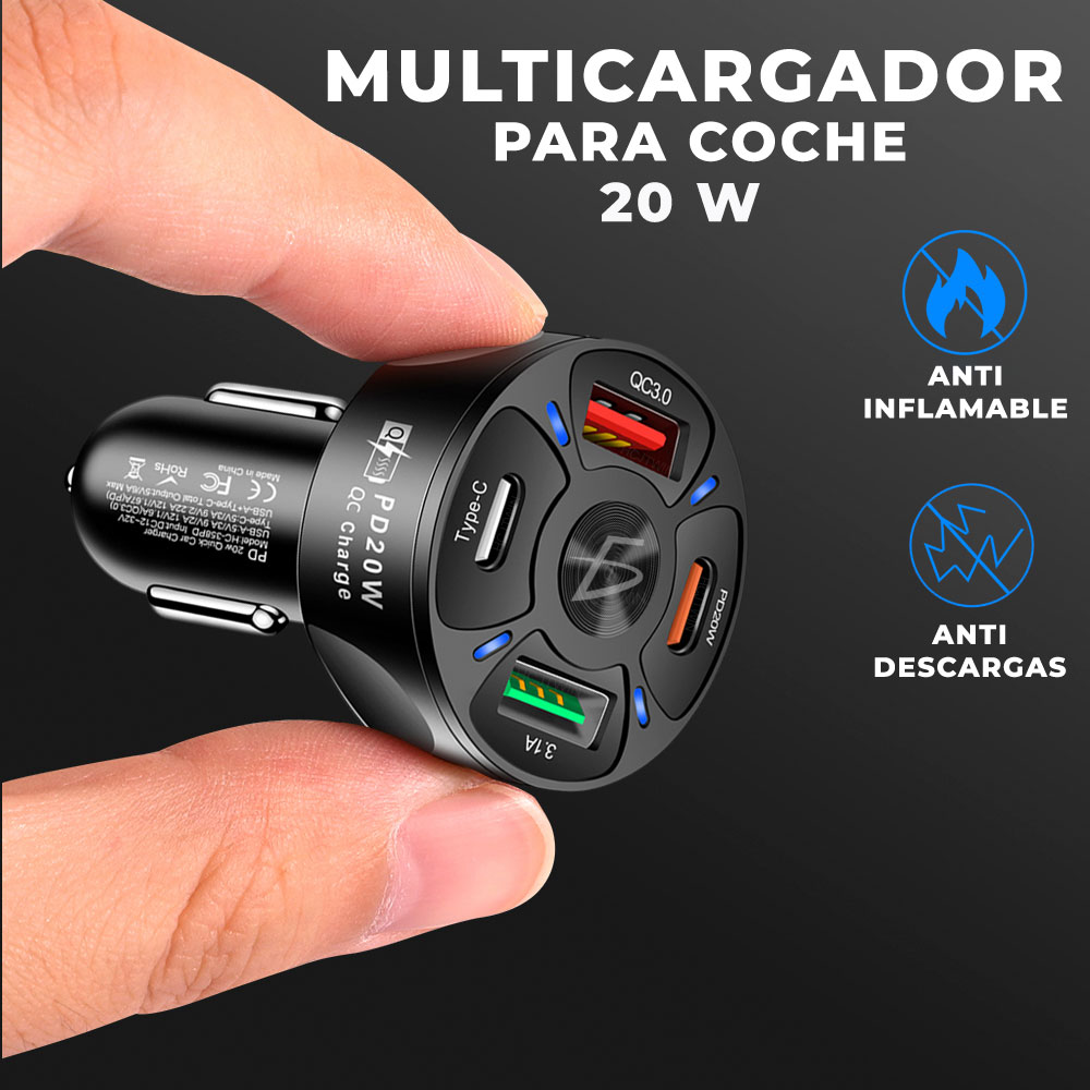 Multicargador para Automovil Coche QC3.0 PD 20W USB3.1A Tipoc 4 en 1