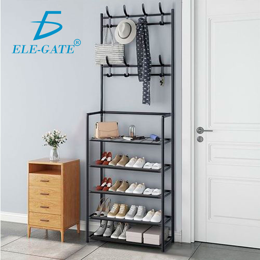 Descripción: Este versátil organizador de 5 niveles combina almacenamiento de zapatos y ropa en un solo lugar conveniente. Con dos barras de perchas resistentes en la parte superior, puedes colgar tus prendas favoritas mientras organizas tus zapatos en los niveles inferiores. Mantén tu vestuario ordenado y accesible con este práctico y funcional organizador.
