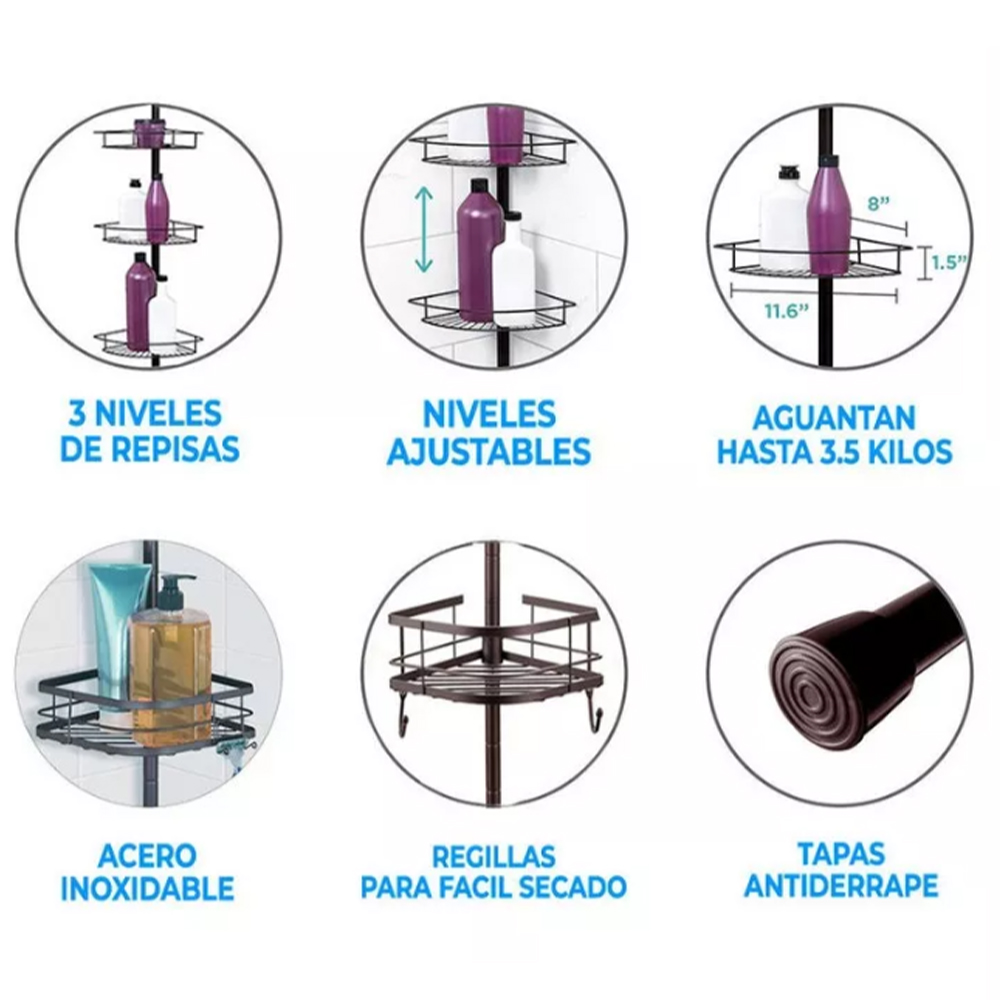 Organizador De Baño Ducha Esquinero 3 Niveles Multifuncional