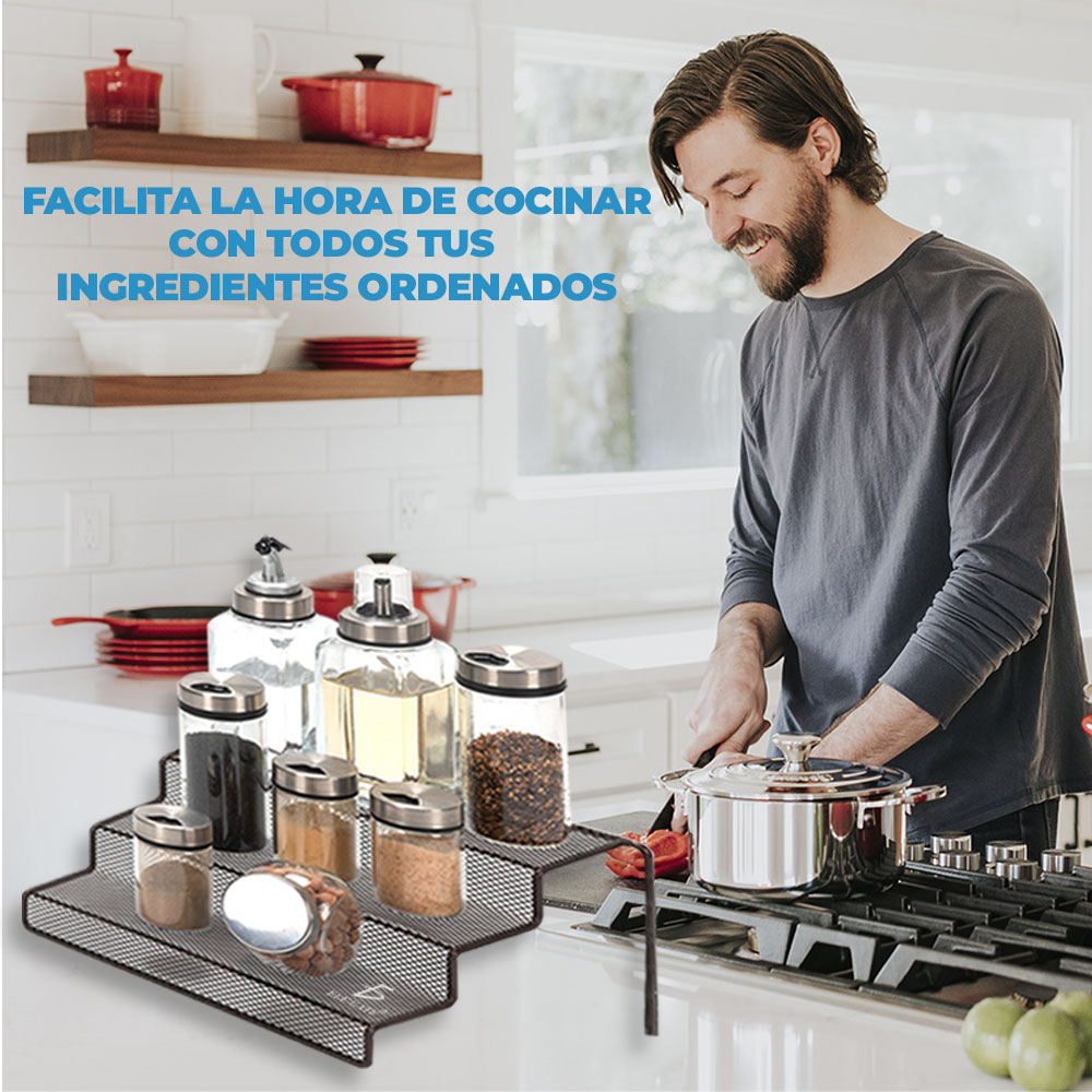Estante organizador de especias de 3 niveles, ampliable, para armario de cocina, estantes para especias