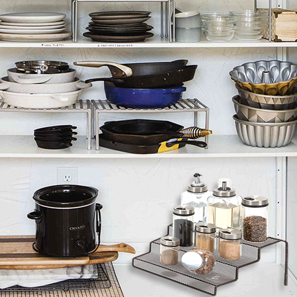 Estante organizador de especias de 3 niveles, ampliable, para armario de cocina, estantes para especias