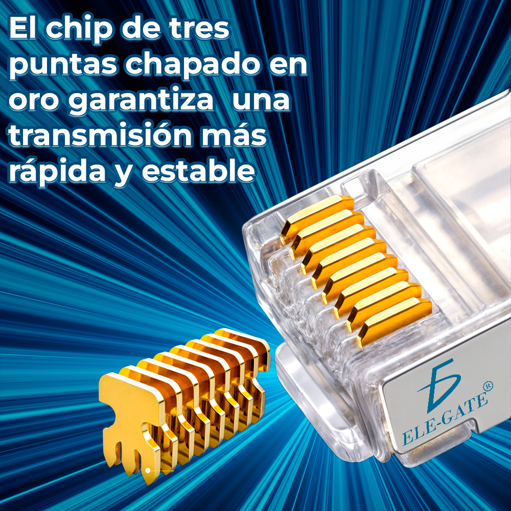 Descubre nuestro paquete de 100 conectores RJ45 con blindaje de aluminio, ideales para cables CAT6, CAT5E y CAT5. Diseñados con un empaque tipo clams y chapados en oro, estos conectores cuentan con fondo transparente para facilitar la verificación de secuencias. Su ranura especial permite que los cables sobresalgan adecuadamente, asegurando una conexión óptima. Perfectos para la construcción de cables de red personalizados, garantizan una transmisión de datos eficiente con velocidades de hasta 10 Gbps. La terminación 8P8C con contacto escalonado de tres puntos ofrece estabilidad y seguridad, mientras que el blindaje de aluminio aumenta su durabilidad y resistencia. La agarradera proporciona un ajuste firme, haciendo de estos conectores la opción perfecta para uso personal y profesional.