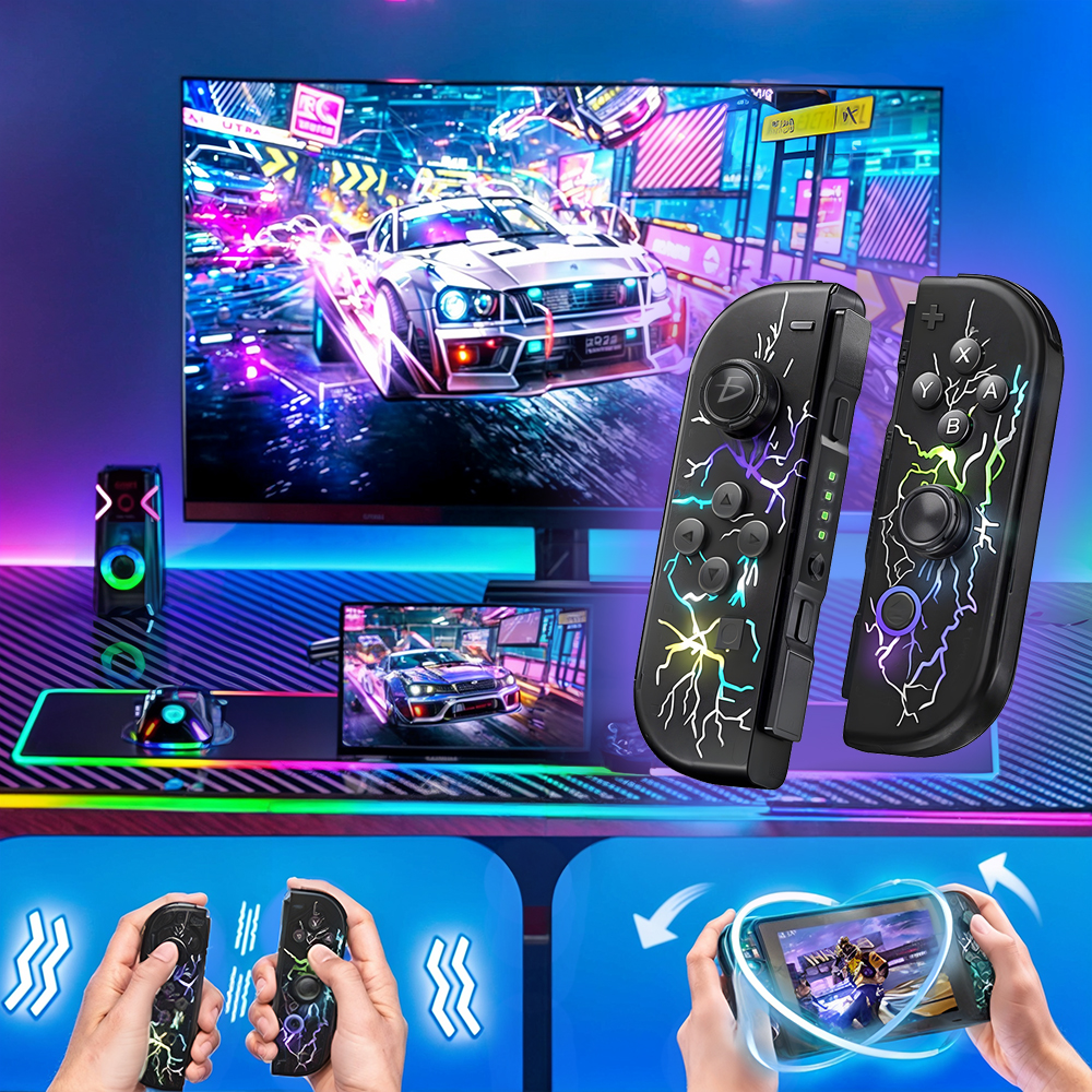 Par de Joycons para SWITCH SWITCH LITE y SWITCH OLED con Luz RGB. Ideal para disfrutar al maximo tus juegos de Nintendo gracias a su batería de 600 MaH con giroscopio de 6 ejes, vibración y con función de utilizar por separado los controles.