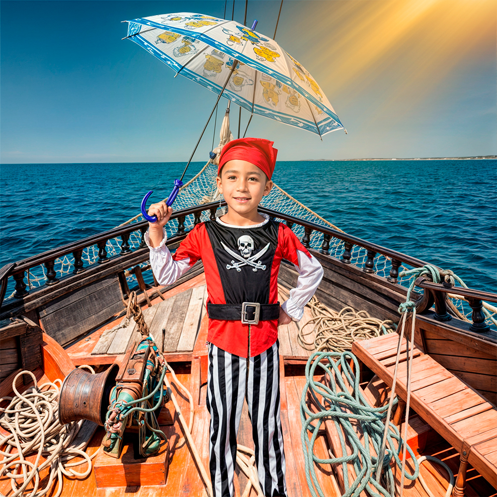 Este paraguas transparente es la elección ideal para mantener a tus peques protegidos de la lluvia mientras se divierten con su emocionante diseño de piratas intrépidos. A continuación, se detallan sus cualidades excepcionales: