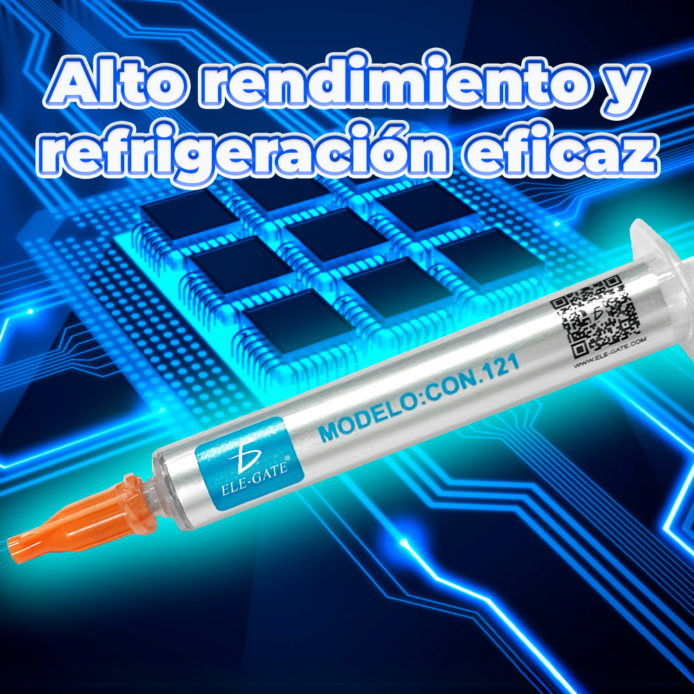 Pasta Térmica disipadora de calor ideal para refrigerar el procesador sin agentes corrosivos. Mantén tu procesador a la temperatura ideal con nuestra pasta térmica disipadora de calor. Eficaz, fácil de aplicar y sin agentes corrosivos, garantiza un rendimiento óptimo y una refrigeración eficiente.