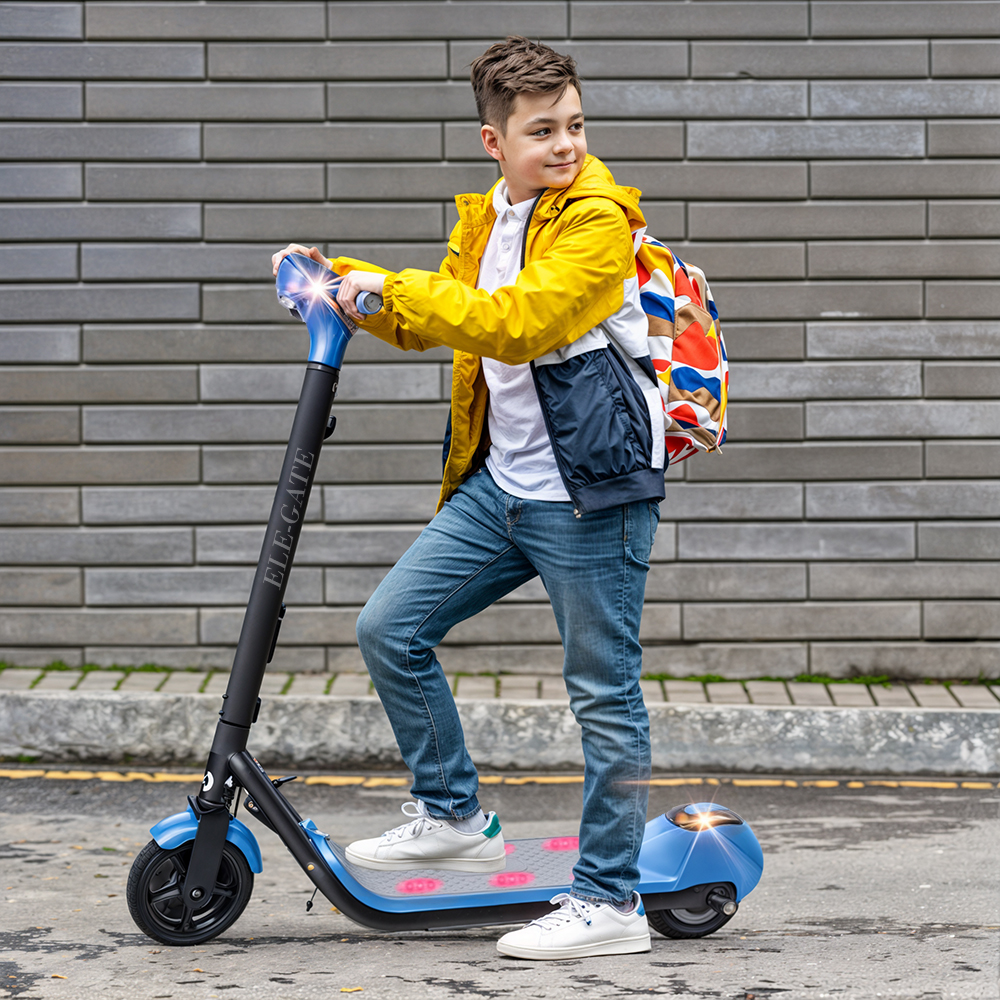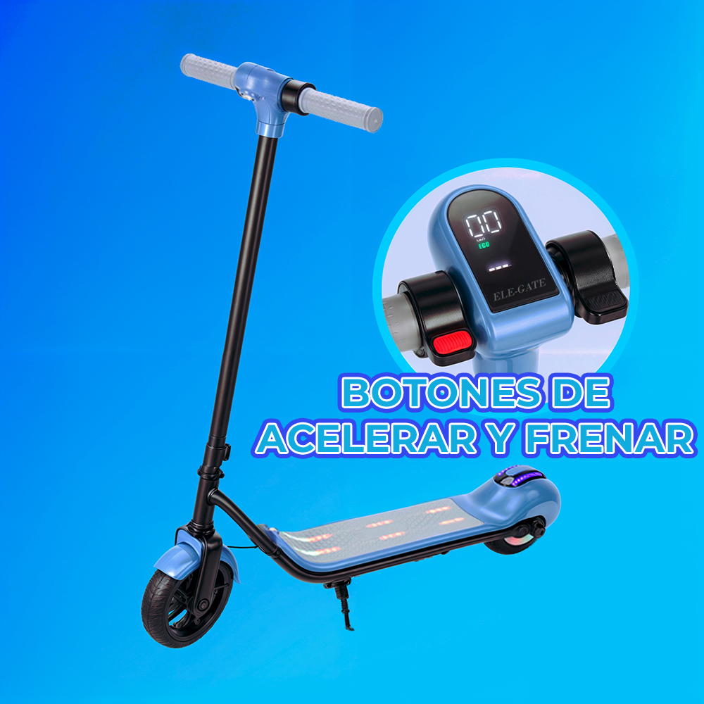 Patín Eléctrico para Niño con bocina Bluetooth y Luz RGB, 110W de potencia y velocidad máxima de 14 km/h. Diseño moderno con luces RGB y Bocina para mayor diversión. Seguro y confiable con velocímetro y límite de velocidad de 8 km/h para principiantes. Batería de carga rápida para más tiempo de uso con menos espera. Ideal para niños que buscan aventura con estilo.