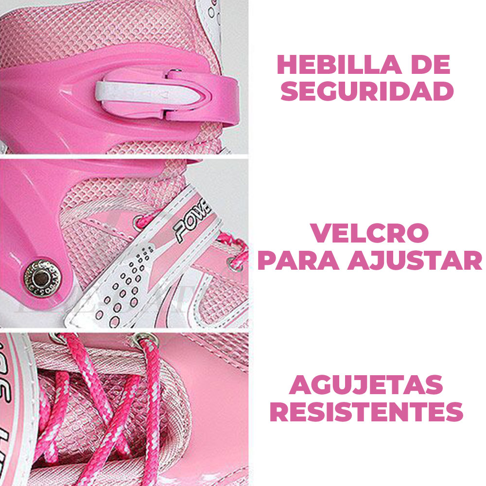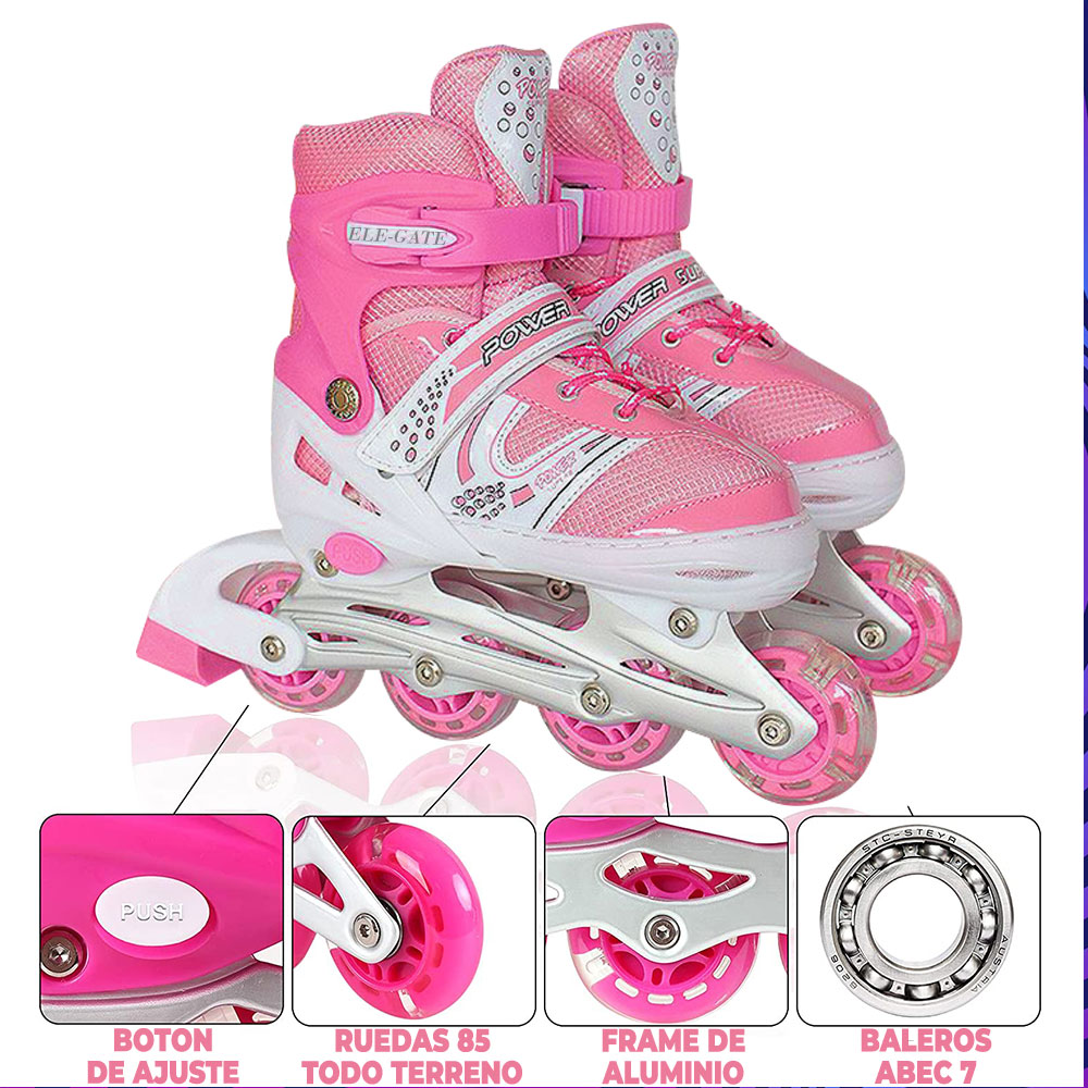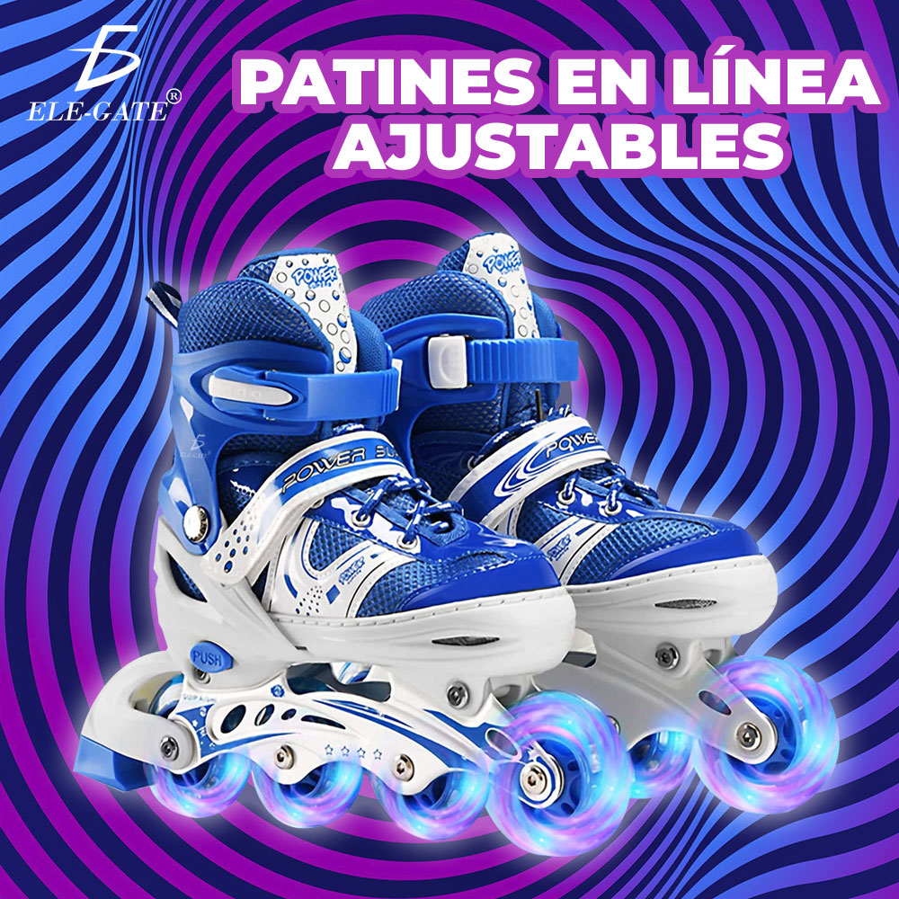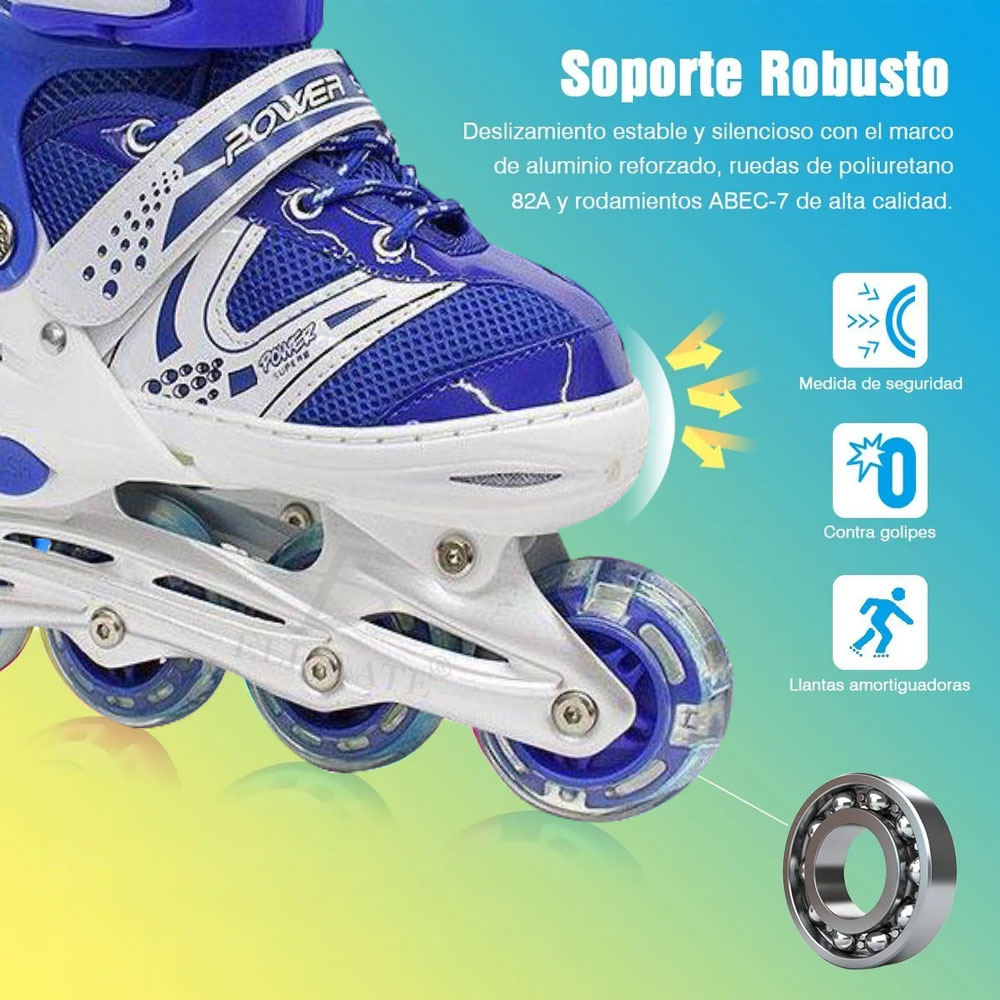 Patínes En Línea Ajustable 6 Ruedas Con Kit Protección Niños Size:M
