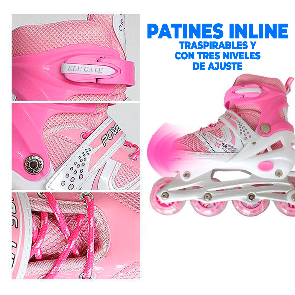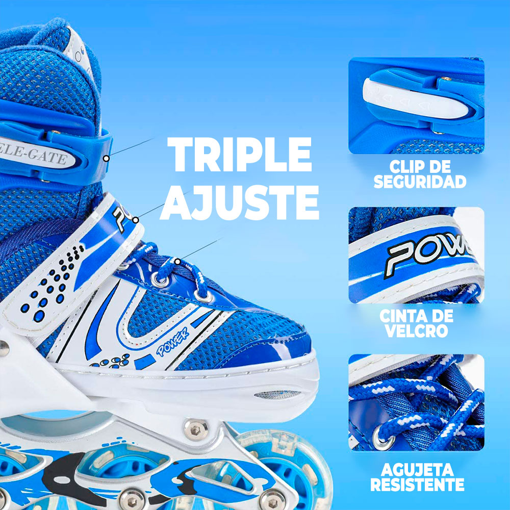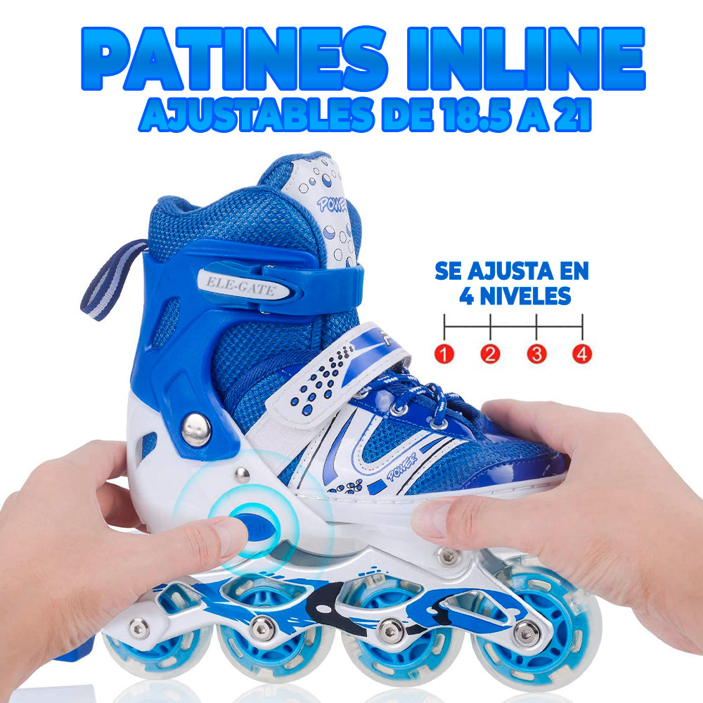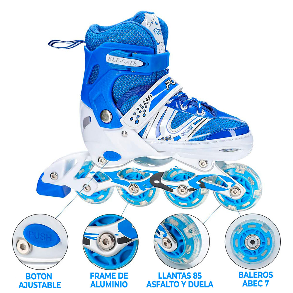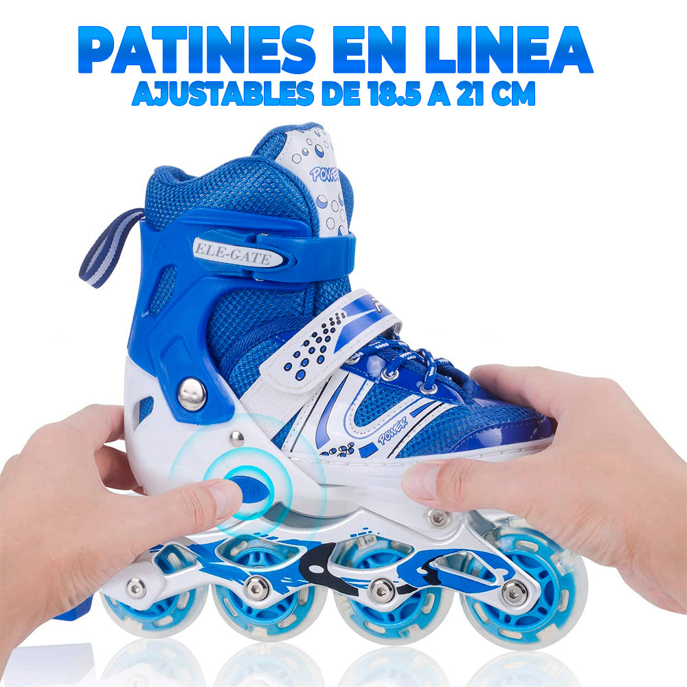 Patínes En Línea Ajustable 6 Ruedas Con Kit Protección Niños Size:S