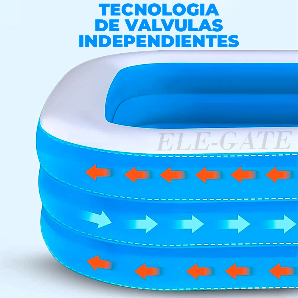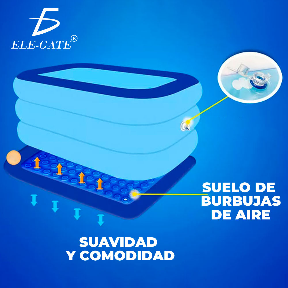 【Resistente y estable】La piscina consta de dos cámaras de aire independientes, que son dos veces más gruesas que la mayoría de las piscinas del mercado y pueden soportar el peso adicional mientras evitan fugas de aire o agua. Los niños pueden jugar felices.