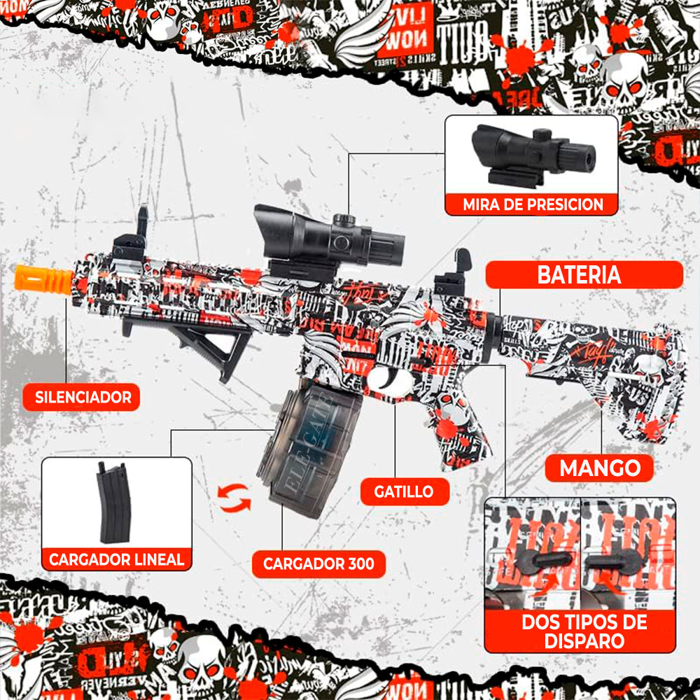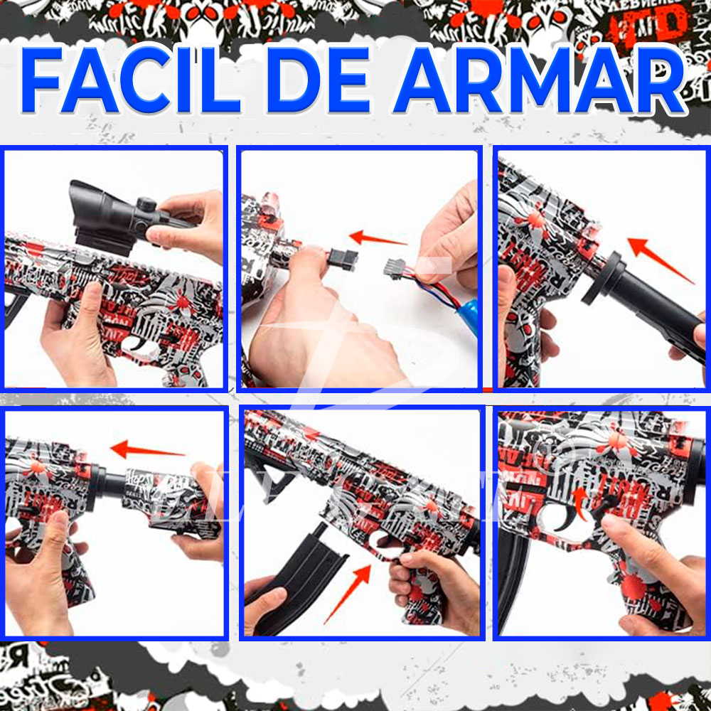 - Lanzador de bolas de gel automático y seguro.