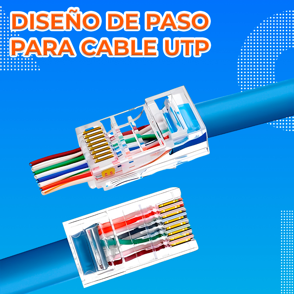 • Cuerpo Transparente: Facilita la verificación de la secuencia de cables (T568A y T568B), reduciendo desperdicios.