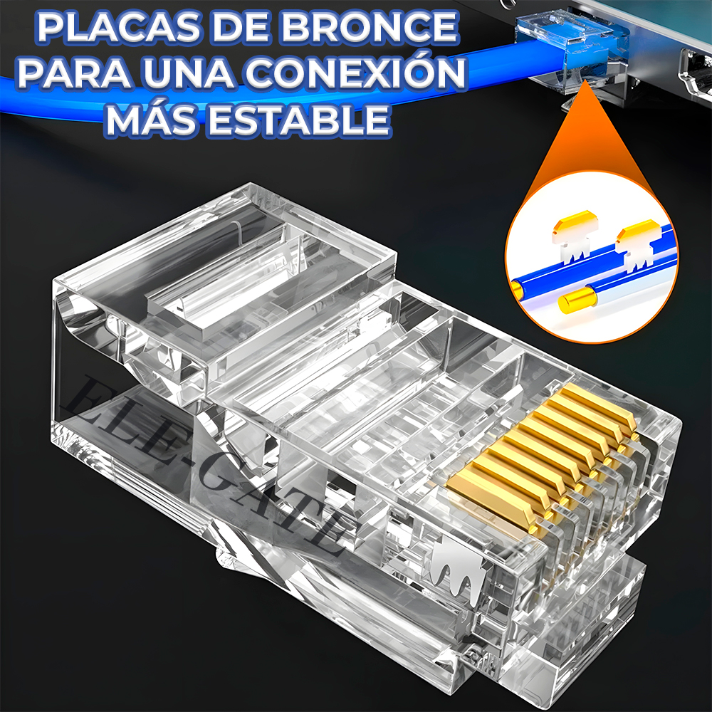 Optimiza tu red con nuestro paquete de 100 piezas de conectores RJ45 de categoría 6, chapados en oro y con diseño transparente. Estos conectores STP son ideales para cables CAT6, CAT5E y CAT5, ofreciendo: