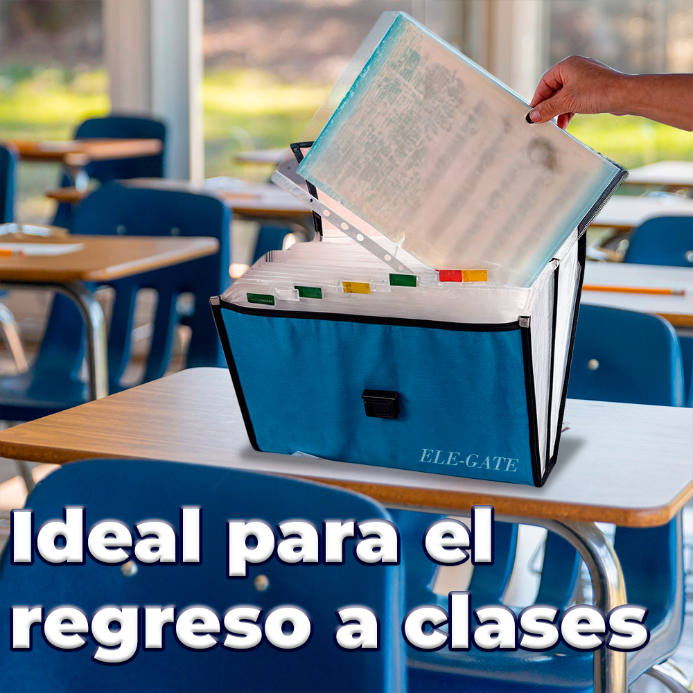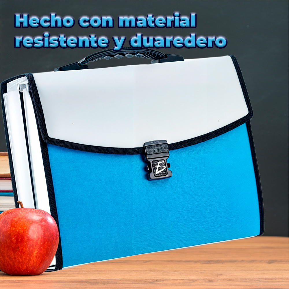 Porta Documentos Escolar Tamaño A4 con Separadores y Banderas de Colores. Ideal para guardar tus documentos importantes, organizar tus apuntes o llevar tus papeles importantes contigo. Con su broche de seguridad evitas que se extravíen.