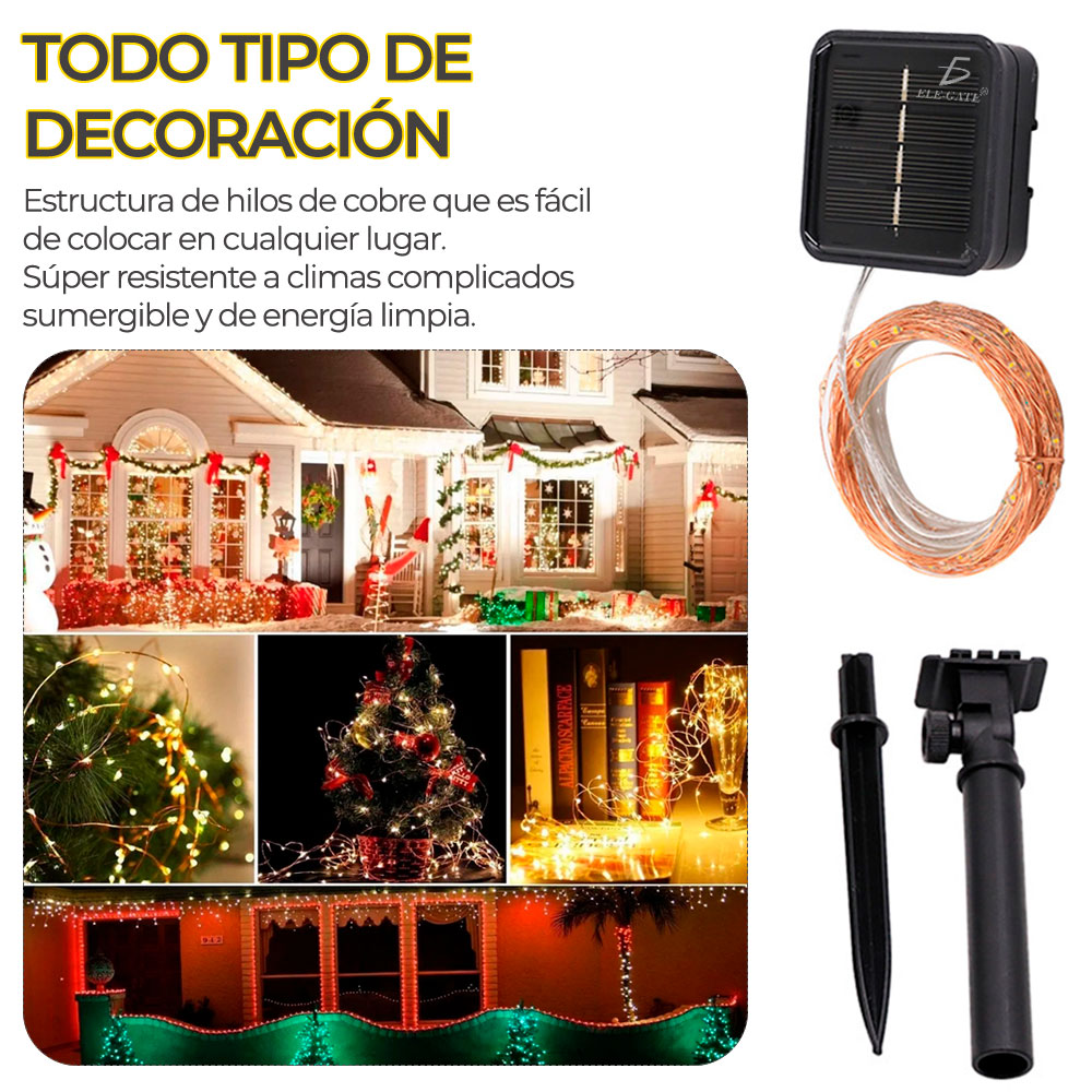Serie Navideña Solar 10 M 100 Leds Luces Color Ambar