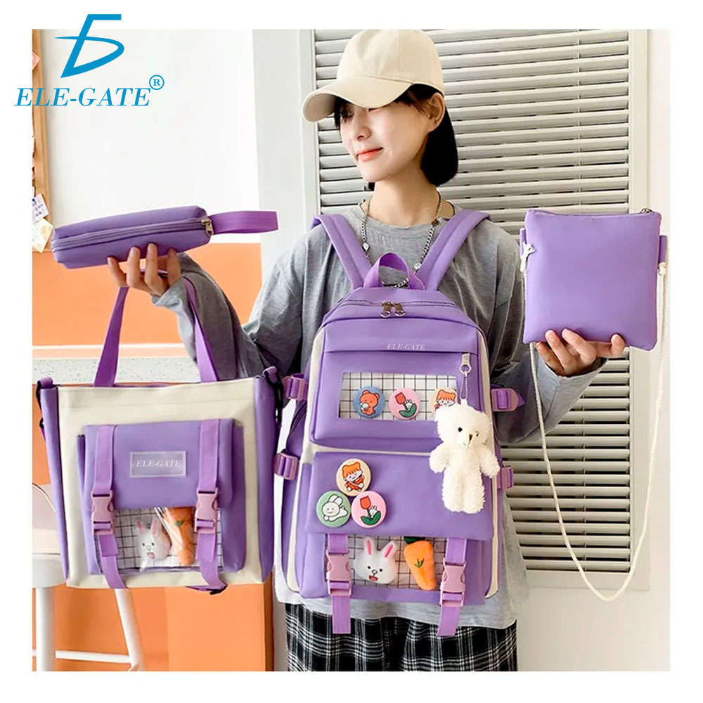 Set 4 Mochila Bolsas Escolar Estudiante Lona Gran Capacidad