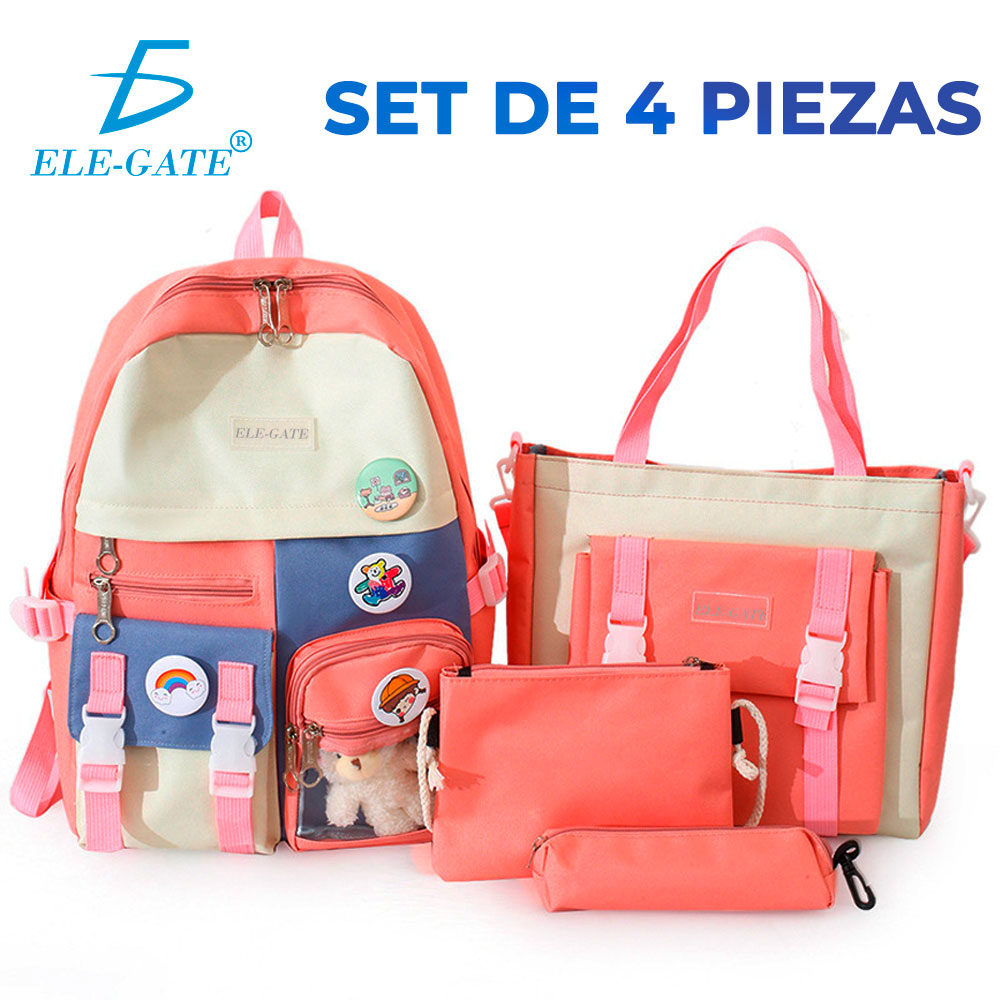 Set 4 Mochila Versión Coreana De Casual Gran Capacidad Bolsa