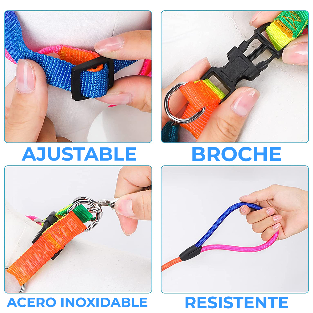 - Kit ideal para paseo Disfruta de un paseo por el parque de forma segura, gracias a la gran resistencia de tu correa y al cómodo arnés para tu perro. Además tu kit resistirá tirones y jalones inesperados de tu mascota gracias a sus materiales de alta resistencia.