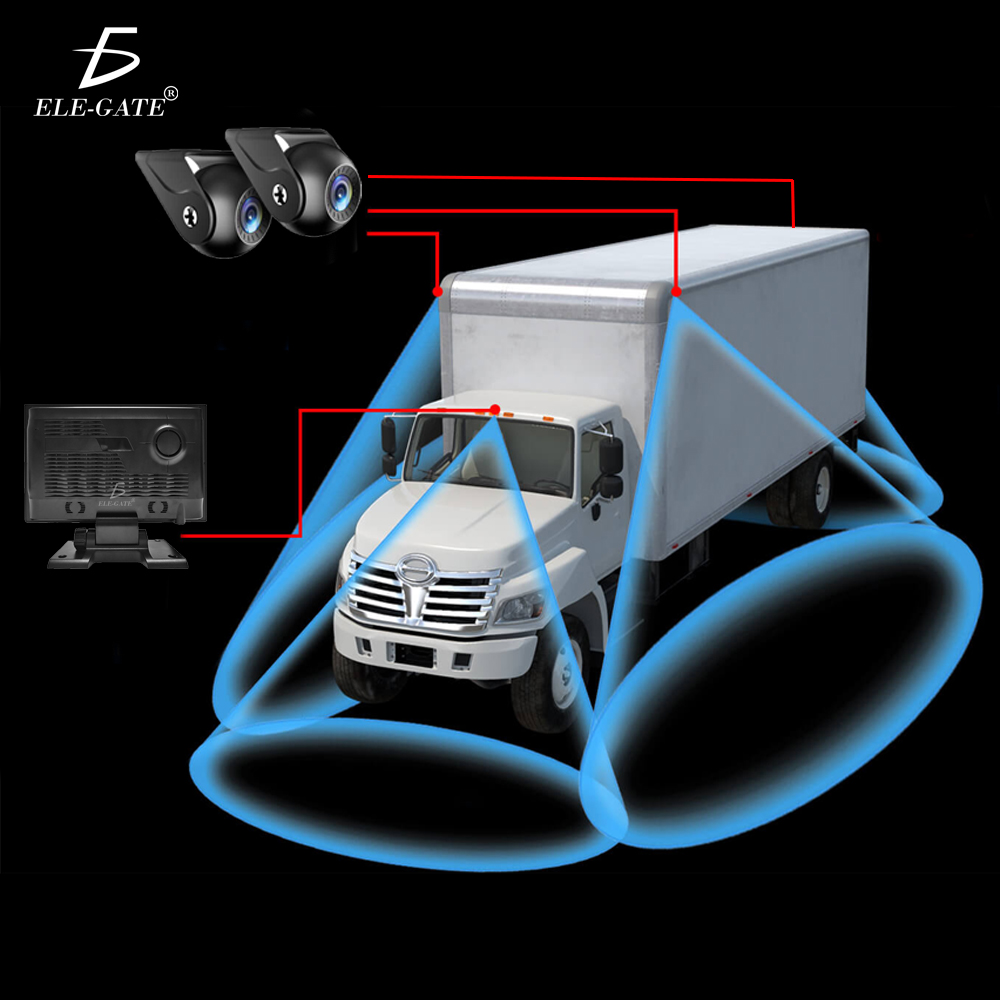 Vista cuádruple dividida con 4 canales, grabación de sincronización separada, cámaras de visión nocturna impermeables, vista lateral frontal trasera para semicamión, furgoneta, remolque RV.