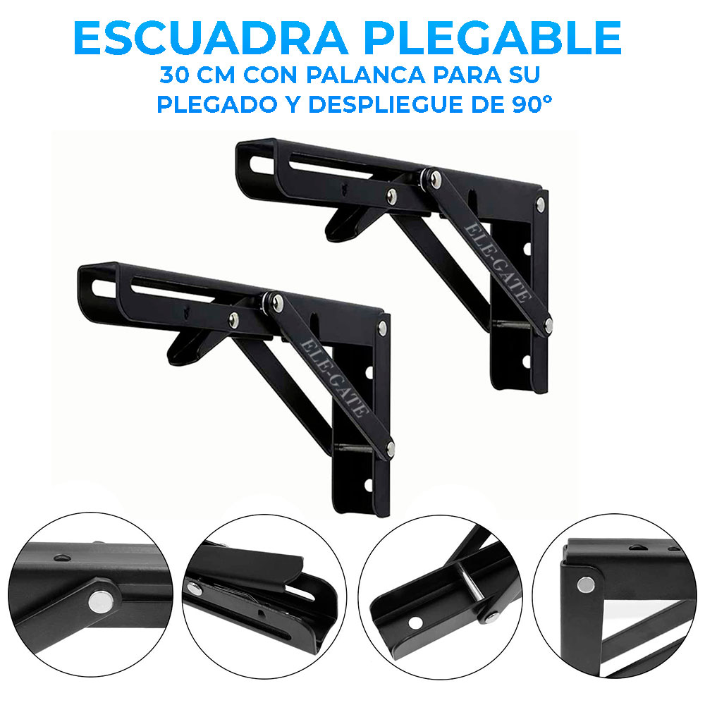 Soporte Ménsula Brazo P/repisa Abatible Plegable 12 Plugadas 1 Par Negro