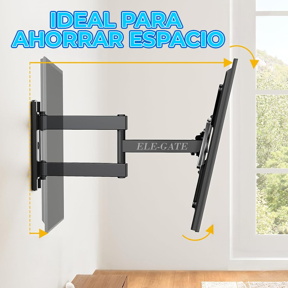 Su diseño desplegable permite ajustar la distancia de la pantalla a la pared, mientras que su rotación de 180° brinda libertad para orientar tu TV según tus necesidades de visualización.