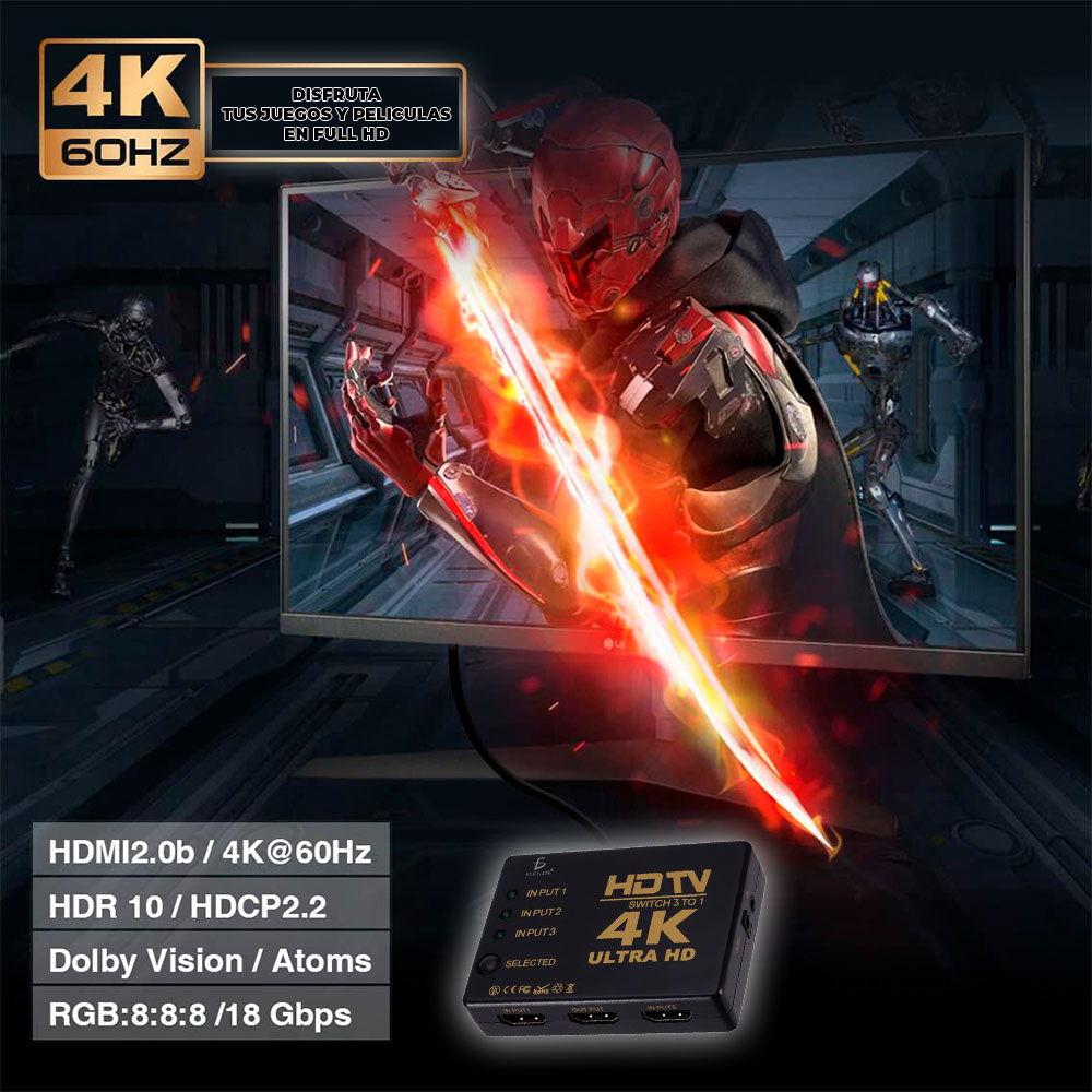 Switch Hdmi 4k Control Remoto Ps3 Xbox Pc Laptop 3 Puertos