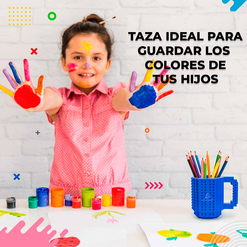 Taza Vaso Bloques De Construcción Multicolor Con Piezas Muñecos