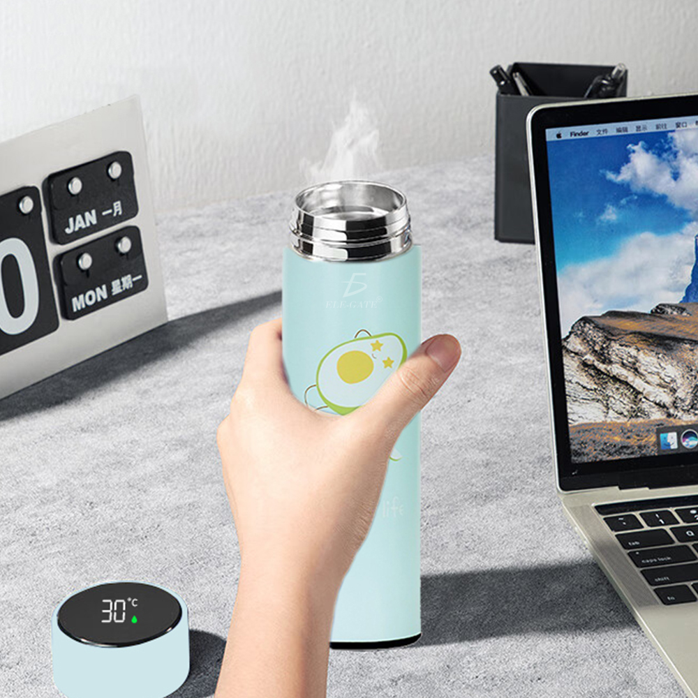 Termo de Acero Inoxidable500 ml/17 oz Inteligente Indicador de Temperatura Ilustración de Aguacate.