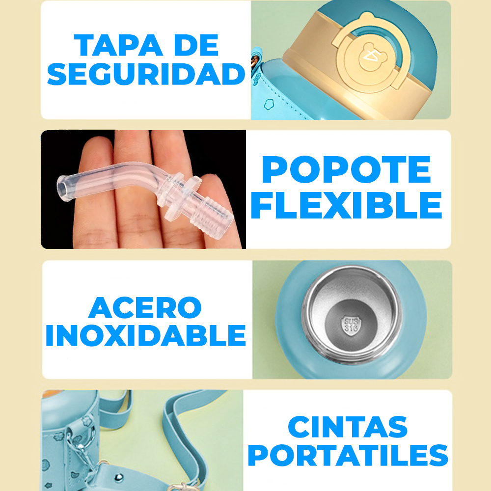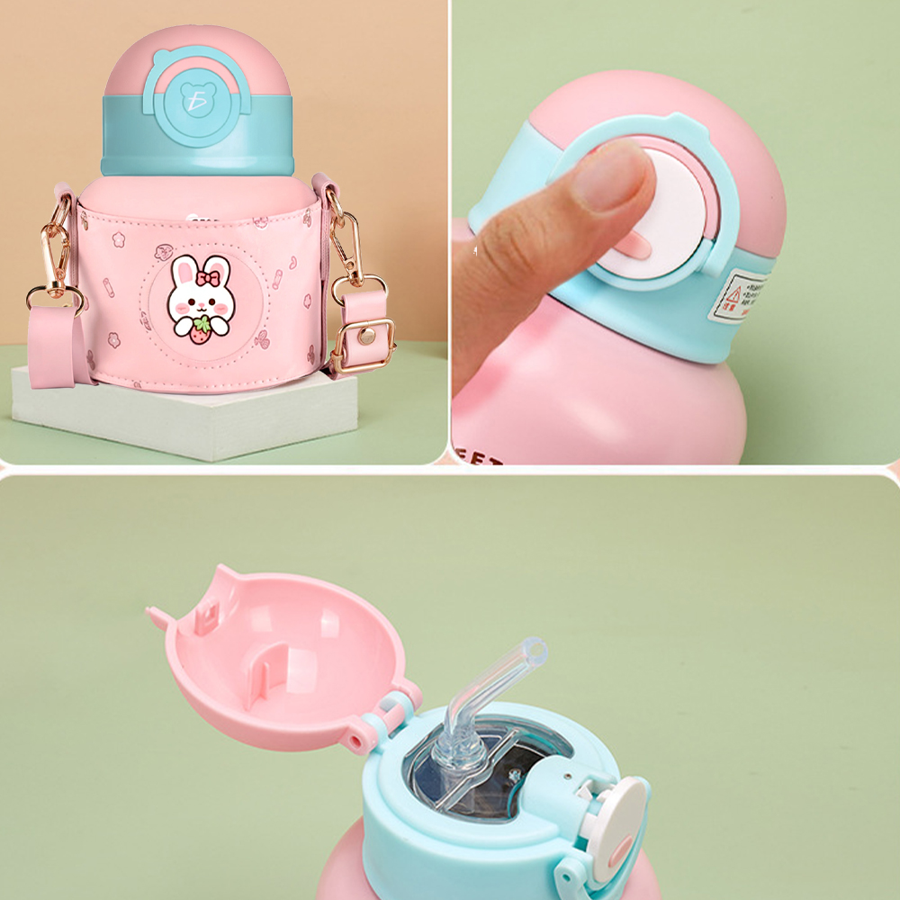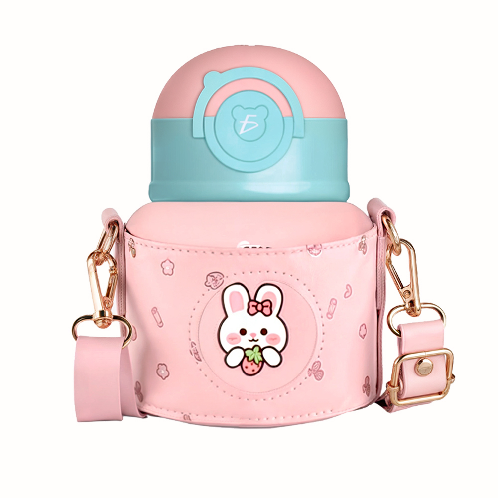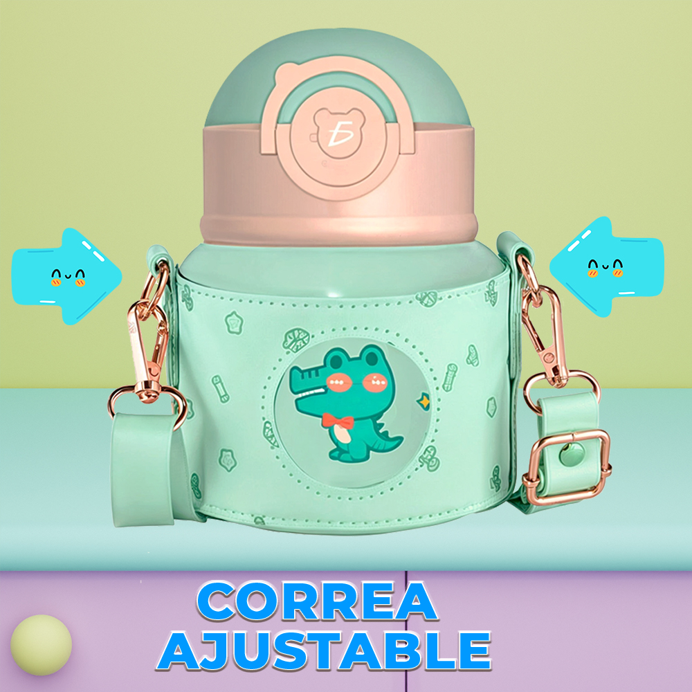 Viene con una manga de copa y correa cruzada, esta taza térmica es adecuada para que los niños los lleven cuando hagan deporte o salgan.