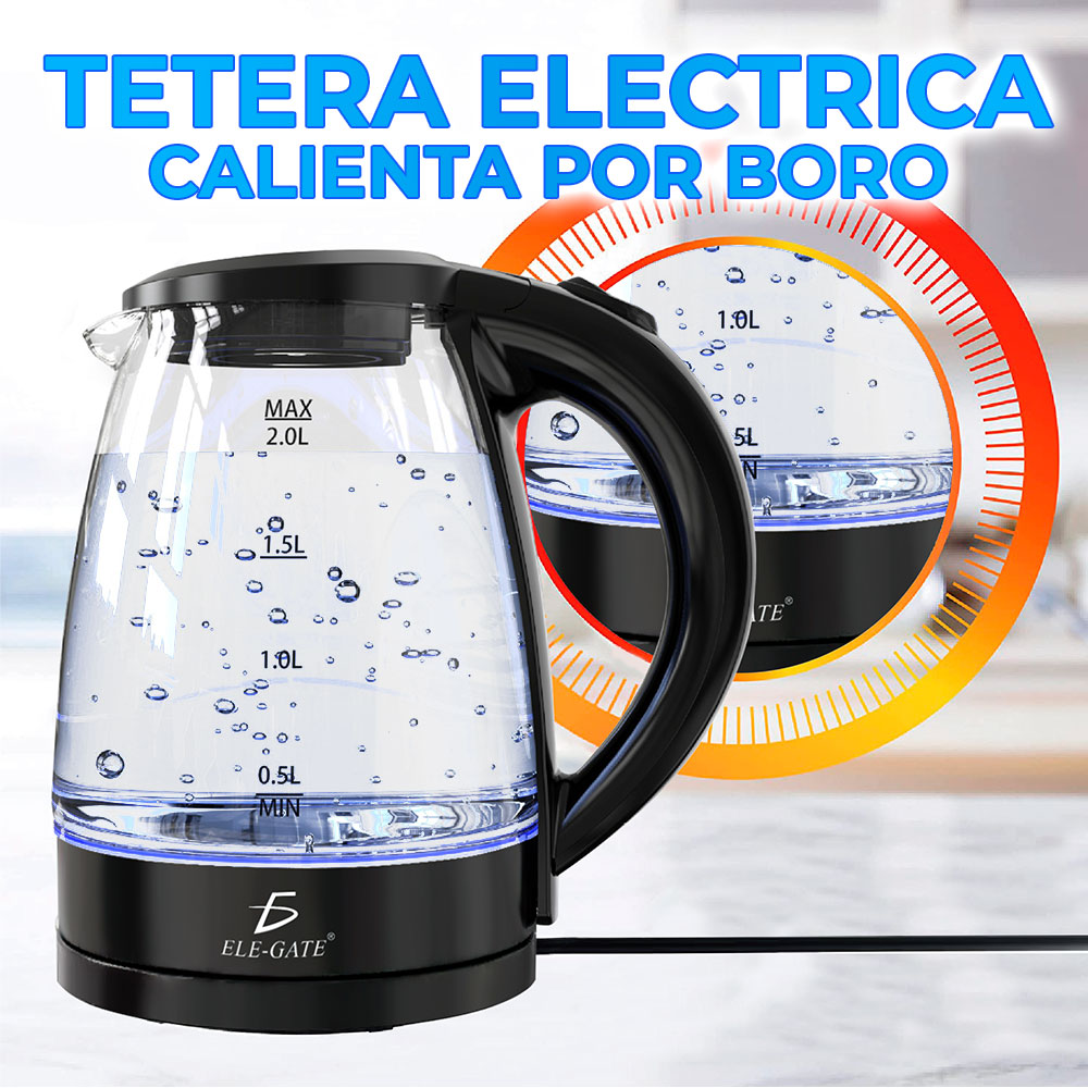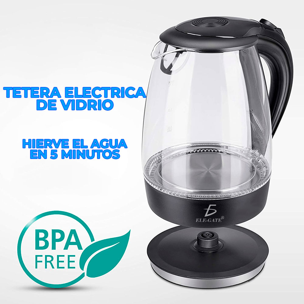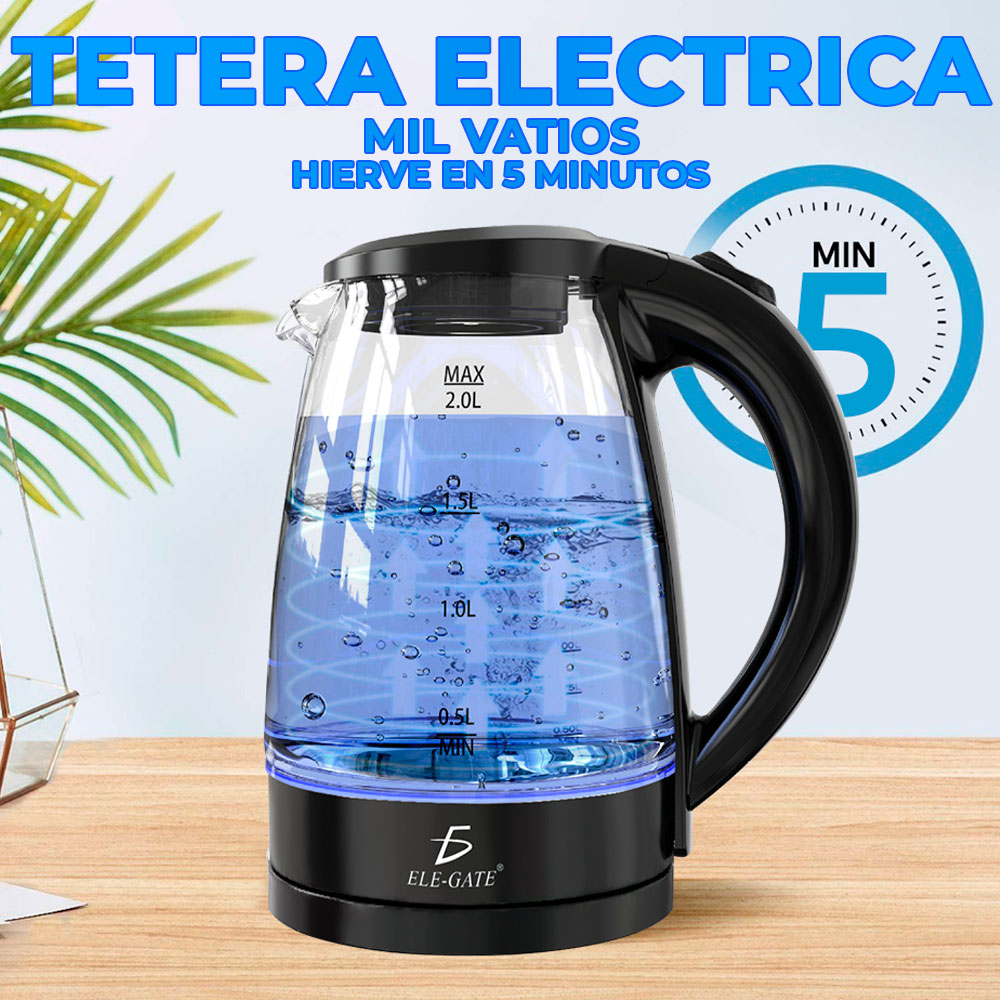 - Tetera eléctrica. Esta tetera eléctrica de acero inoxidable y vidrio de borosilicato con infusor extraíble y capacidad de 2L es la opción perfecta para elevar tu experiencia en la cocina ya que nunca fue tan fácil y rápido calentar agua, la jarra tiene un sistema de medición para calentar la cantidad de agua que requieras.