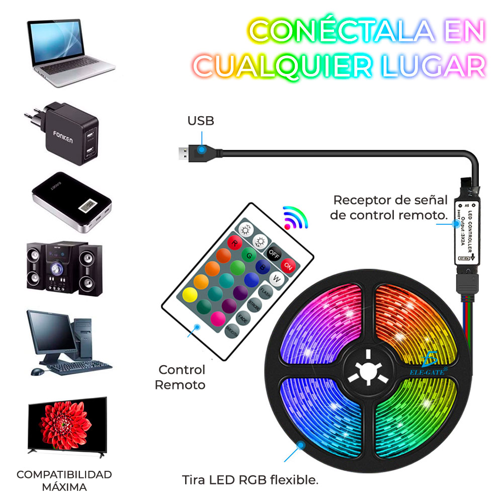Tira de Luz Led RBG 5050 Con Control de 2 Metro