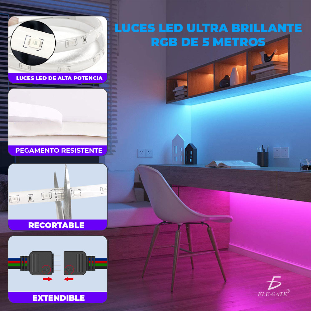 Tira de Luz Led RBG 5050 Con Control de 5M Con Enchufe