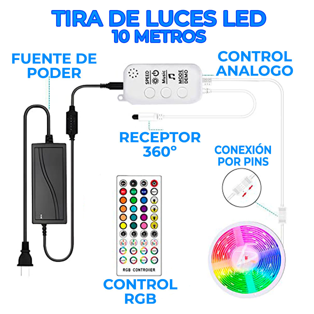 Tira Led Rgb 10 M Luces Led Ritmo Musical Conexión Bluetooth
