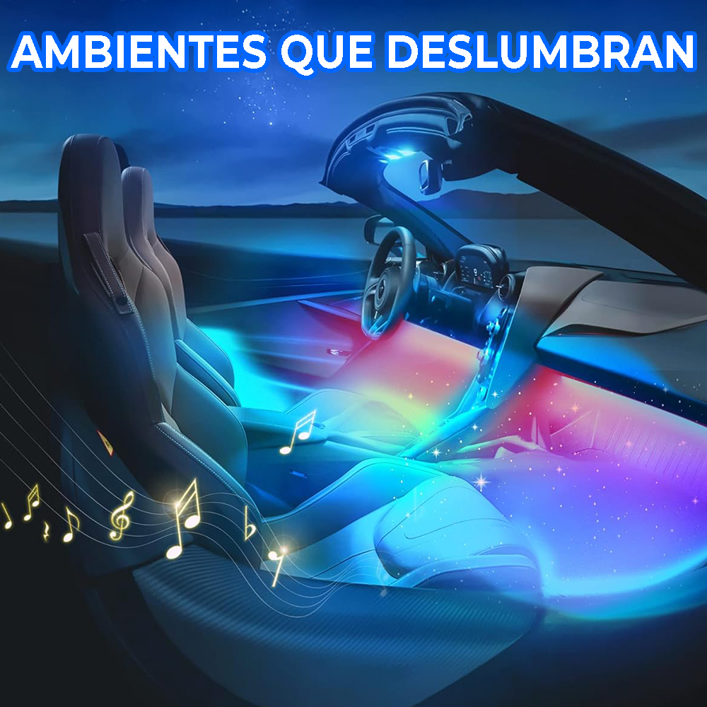 Transforma el interior de tu vehículo con este kit completo de iluminación LED RGB. Fácil de instalar, resistente y totalmente personalizable, incluye control remoto y compatibilidad con app móvil para que elijas tu ambiente ideal en segundos.