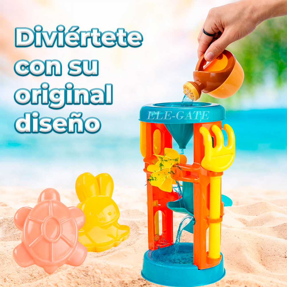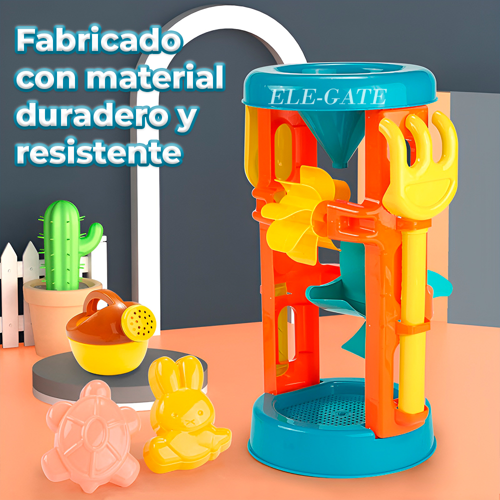 Set de Juguetes de Arena con Diseño de Torre de Rueda para Niños, Fomenta la Creatividad y la Diversión al Aire Libre.