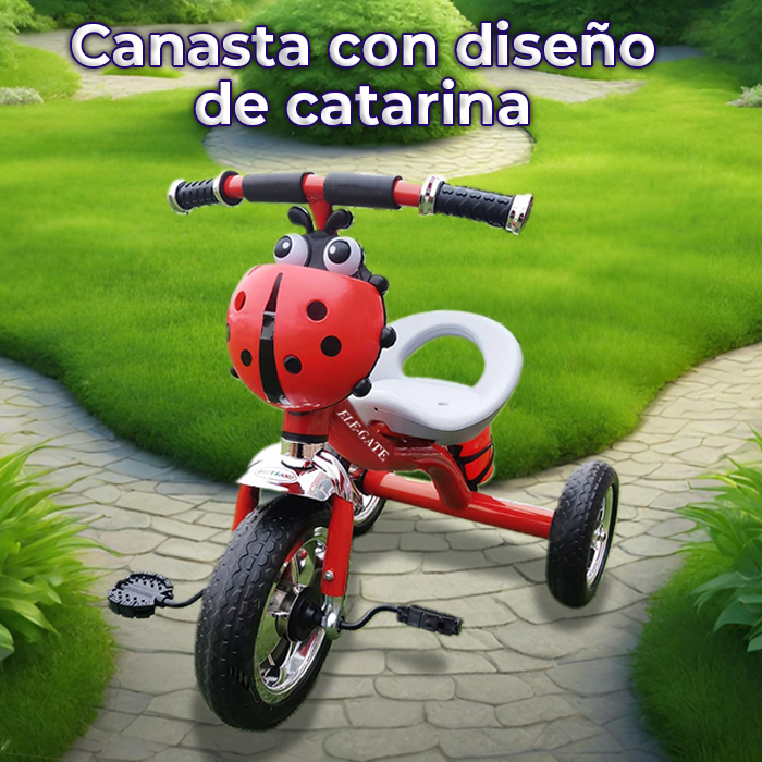 El triciclo de Catarina con ruedas de plástico y colores vibrantes es un juguete ideal para niños pequeños que están aprendiendo a andar en bicicleta. Aquí tienes algunas características importantes que podrías esperar de este triciclo: