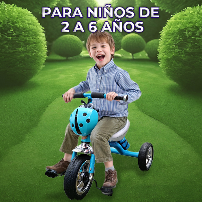 Triciclo de Catarina Ruedas de plástico colores vibrantes Soporta hasta 30 kilos con sujetador de botella de agua