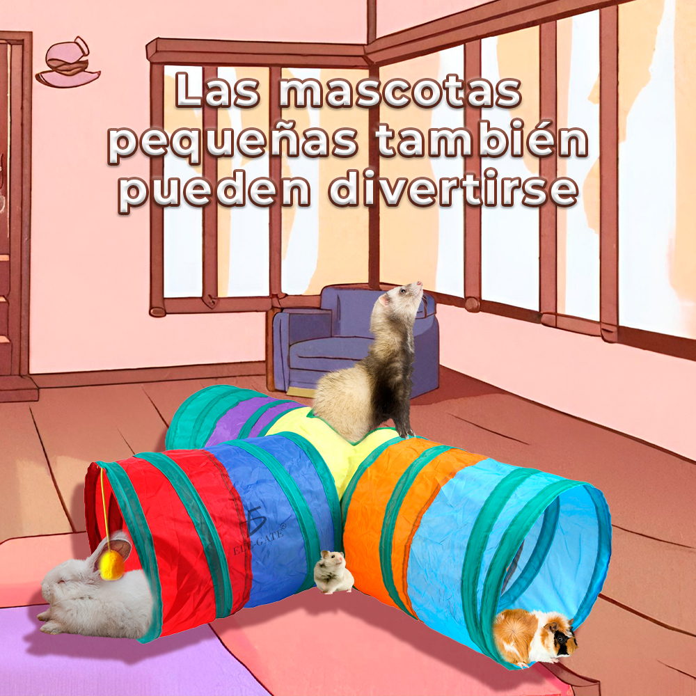Túnel en Forma de T con Tres Salidas para Gato, Flexible y Plegable, Resistente a rasguños colorido y ayuda a fomentar sus instintos