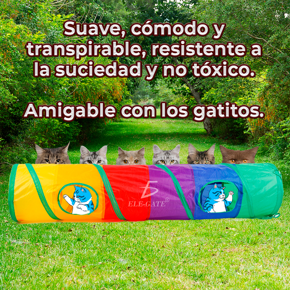 - Resistente y duradero: Fabricado con materiales resistentes, este túnel está diseñado para soportar el juego activo de tu gato, asegurando horas de diversión sin preocupaciones.