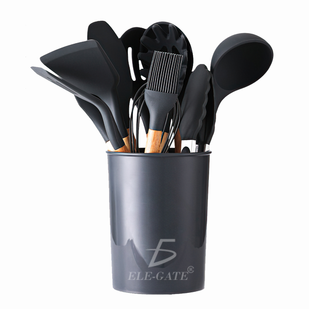 Utensilios de Cocina Mango de Silicona Y Madera 12 PCS.