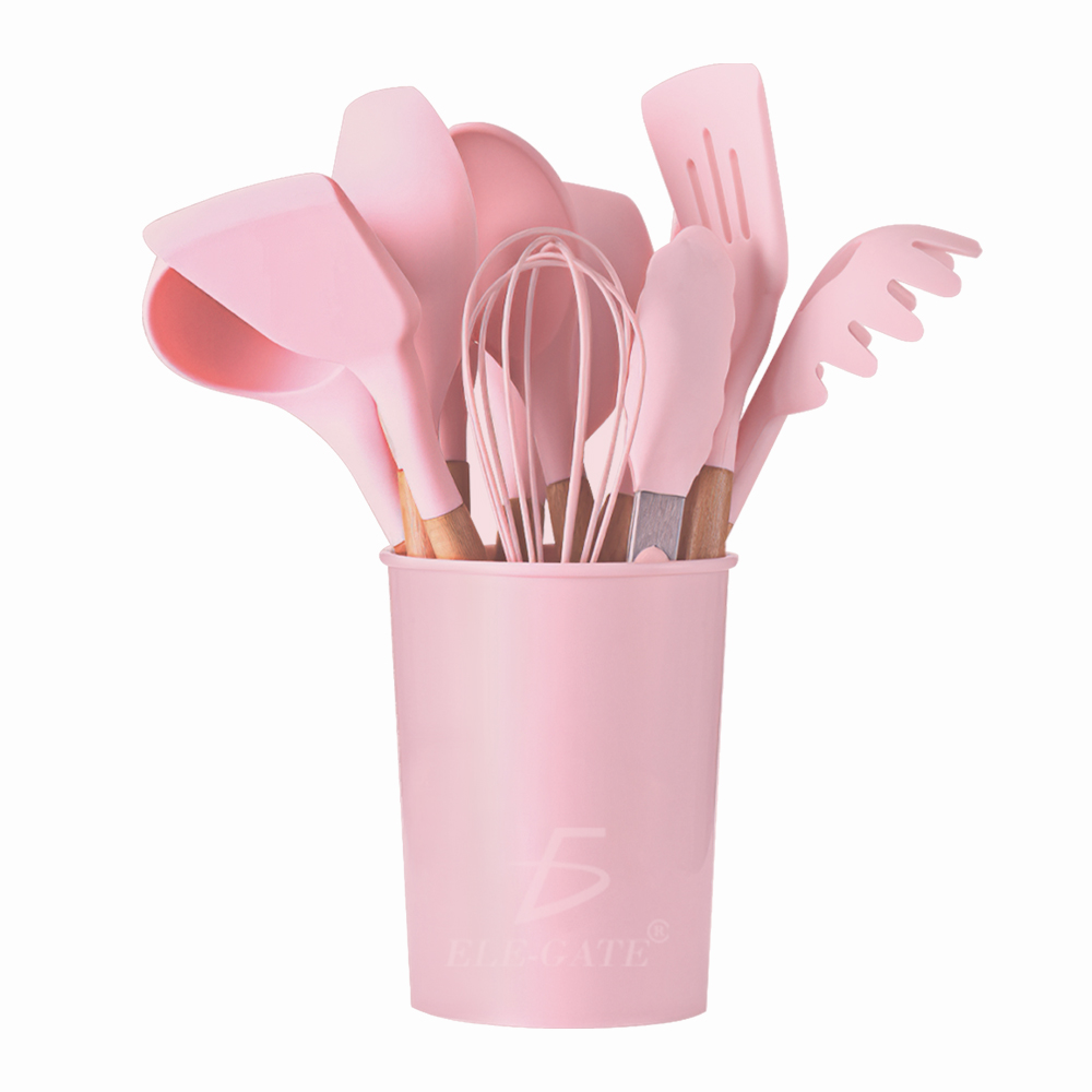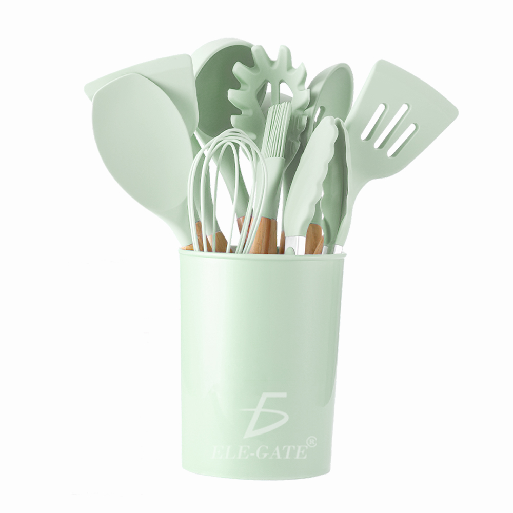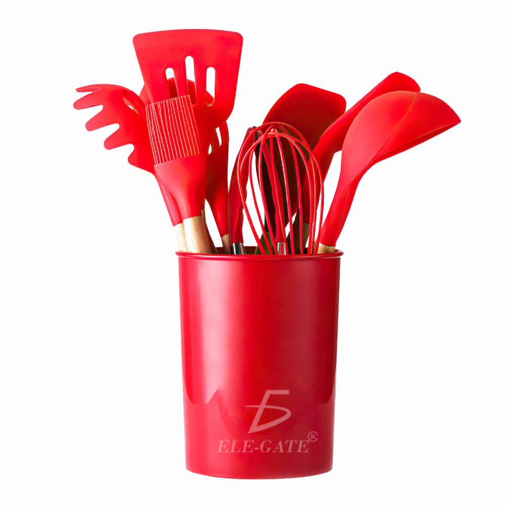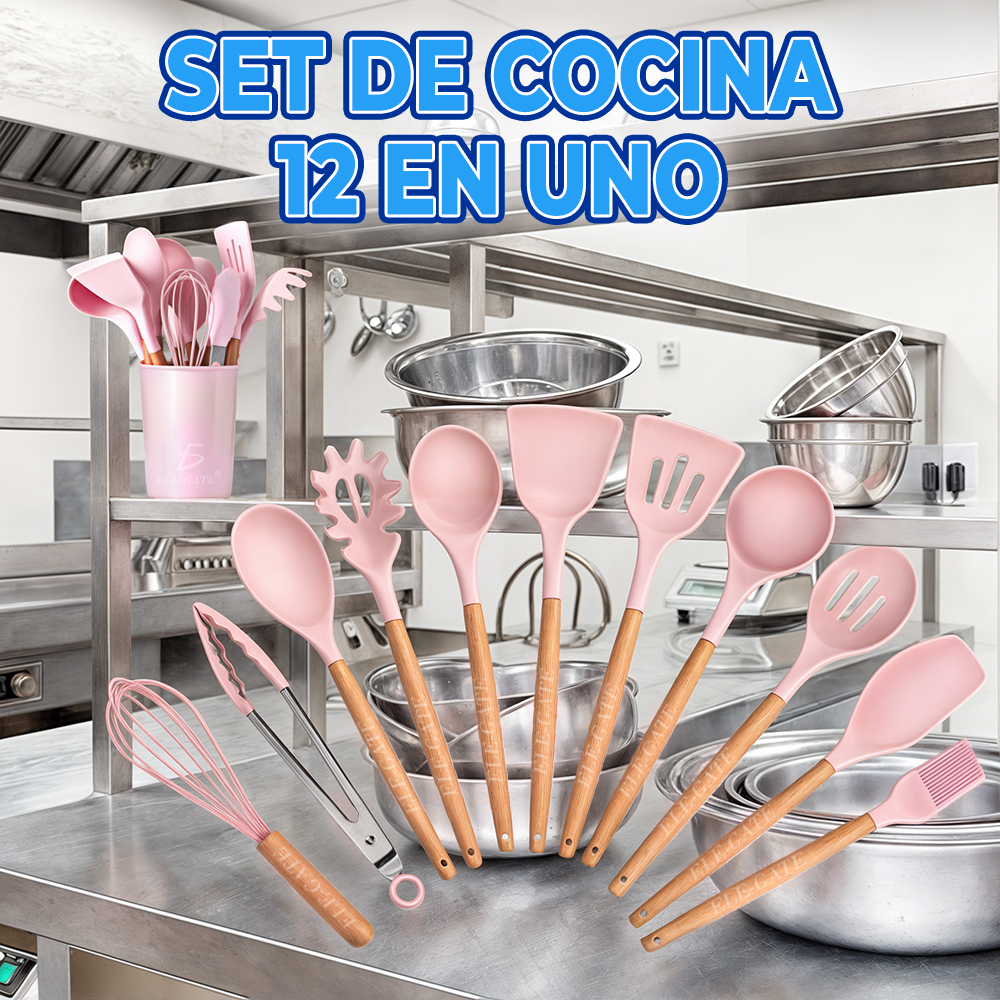 Utensilios de Cocina Mango de Silicona Y Madera 12 PCS.