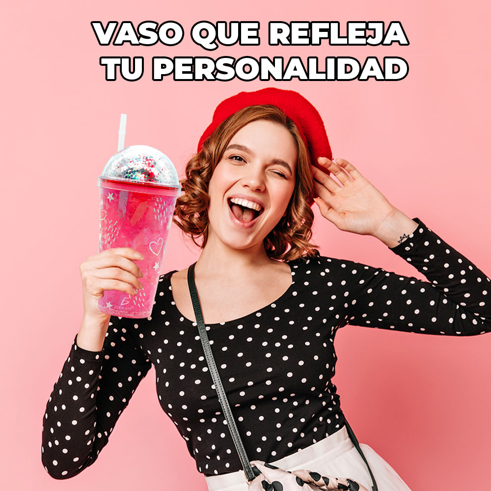 Contiene una tapa de cúpula con imagen de amor, se verá increíble cada vez que lo utilices. Es muy cómodo y cuenta con popote, siempre podrás estar hidratada y disfrutar de tus bebidas favoritas.