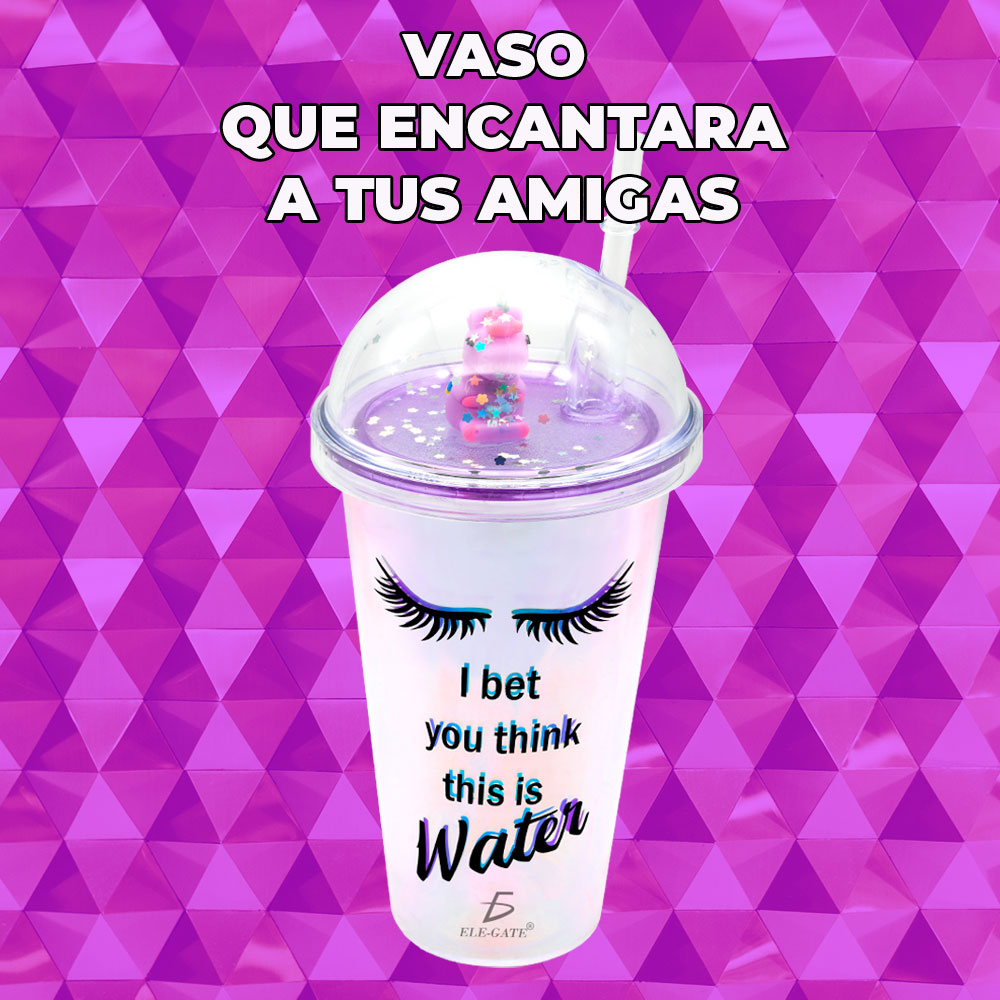 Vaso Con Popote Y Tapa De Cúpula Con Imagen de pestañas