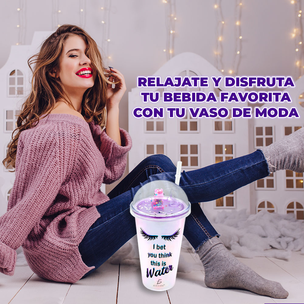 Vaso Con Popote Y Tapa De Cúpula Con Imagen de pestañas